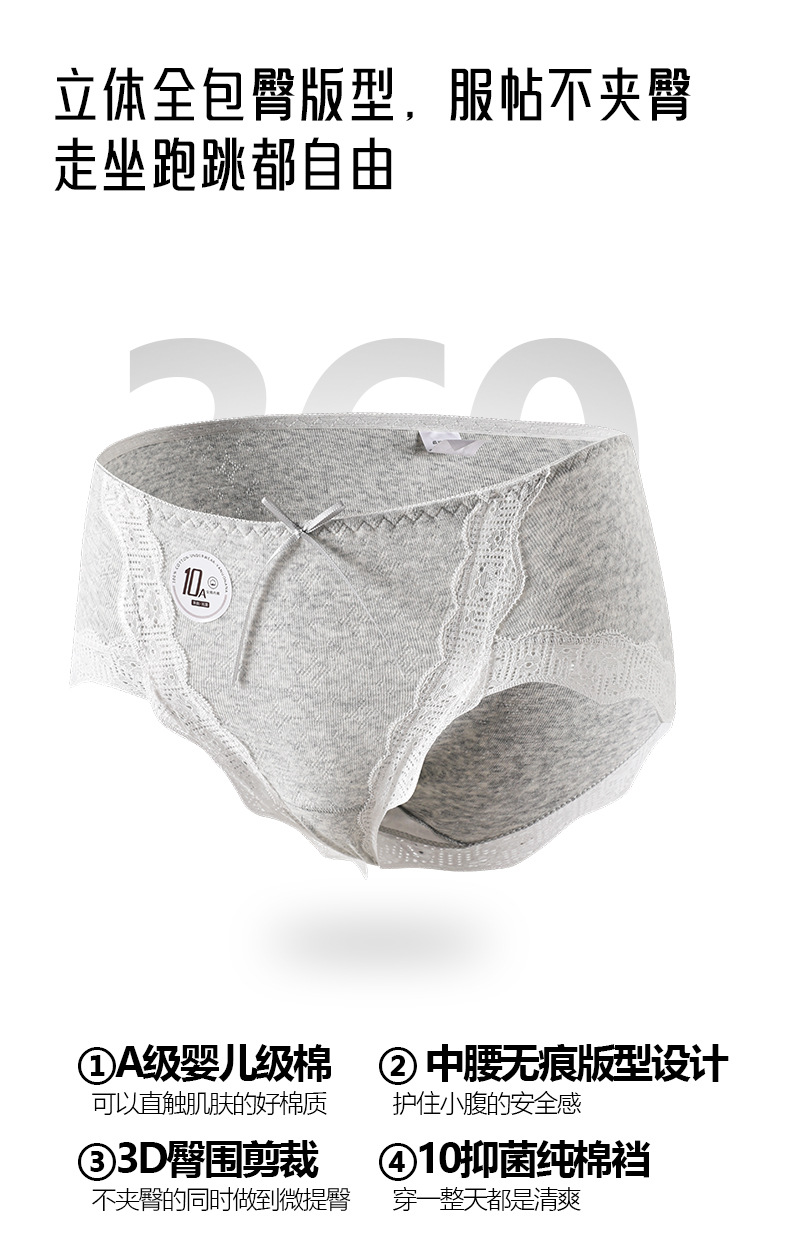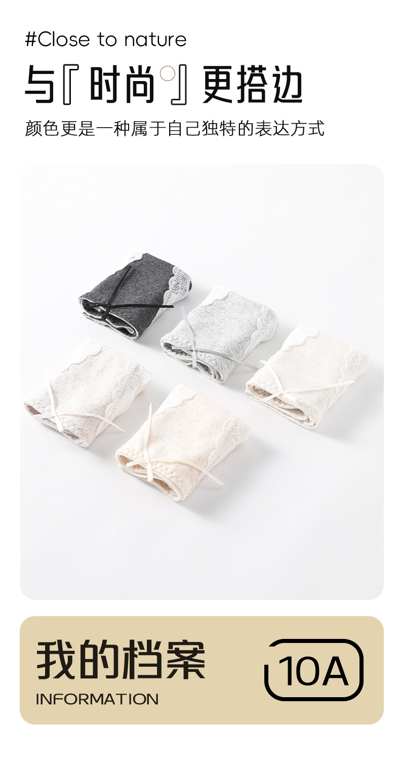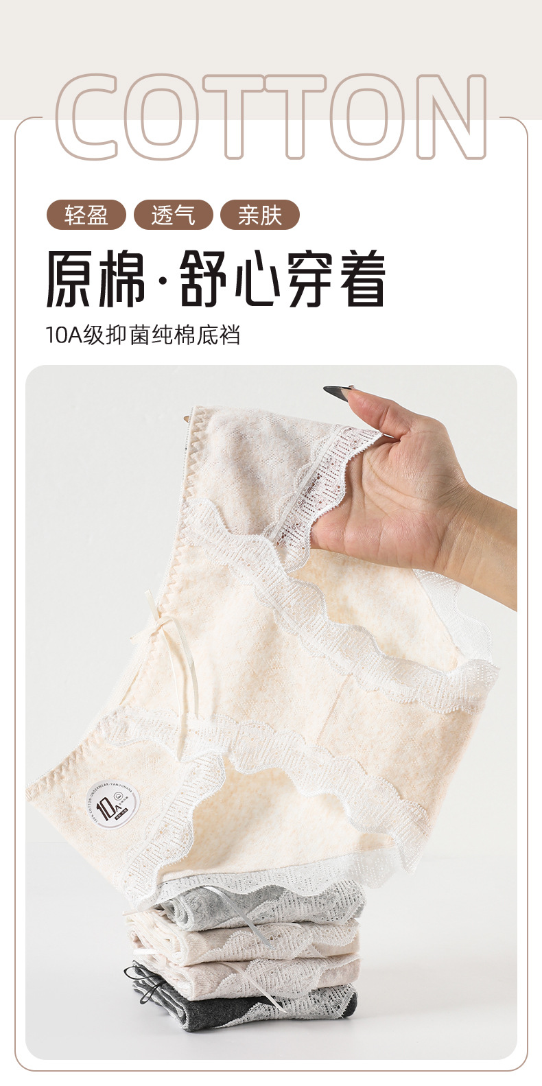달콤한 레이스 퓨어 코튼 천연 컬러 원사 크로트 팬티 10A 박테리아 정적 통기성 하이 스플릿 걸스 미드 웨이스트 브리프