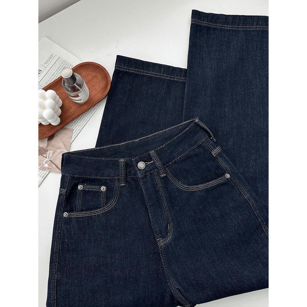 오리지널 데님 다크블루 스트레이트 진 여성용 2026년 봄 신상 루즈핏 슬림핏 봄여름 하이웨이스트 스트레이트 팬츠