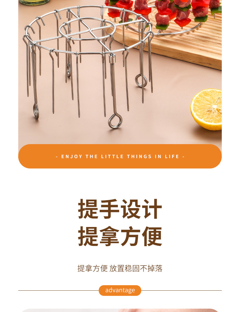 304 스테인리스 원형 바베큐 그릴 탈착식 휴대용 그릴 꼬치구이 스탠드형 꼬치구이 에어프라이어 액세서리스토어 가기