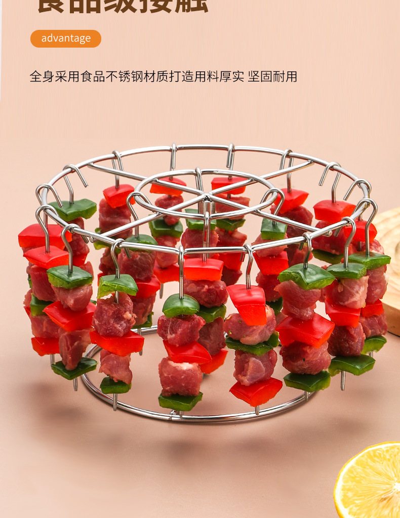 304 스테인리스 원형 바베큐 그릴 탈착식 휴대용 그릴 꼬치구이 스탠드형 꼬치구이 에어프라이어 액세서리
