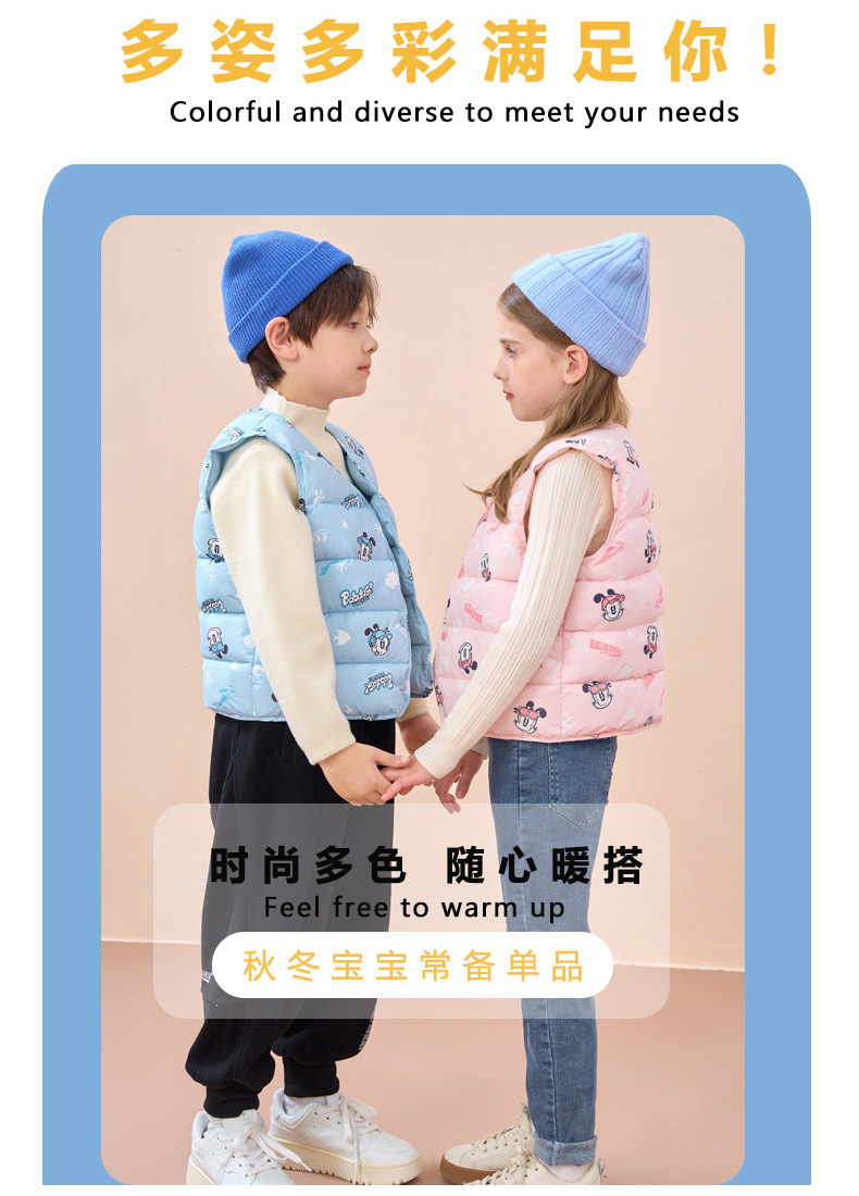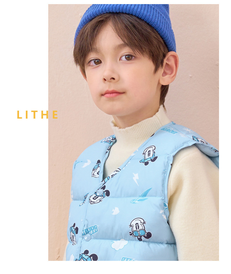바부 콩 풀 프린트 어린이 인쇄 얇은 조끼 가을과 겨울 따뜻한 조끼 귀여운 만화 한국 어린이 면화 조끼스토어 가기