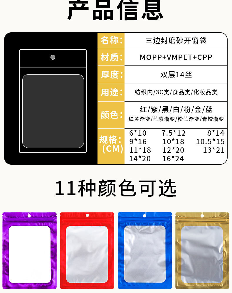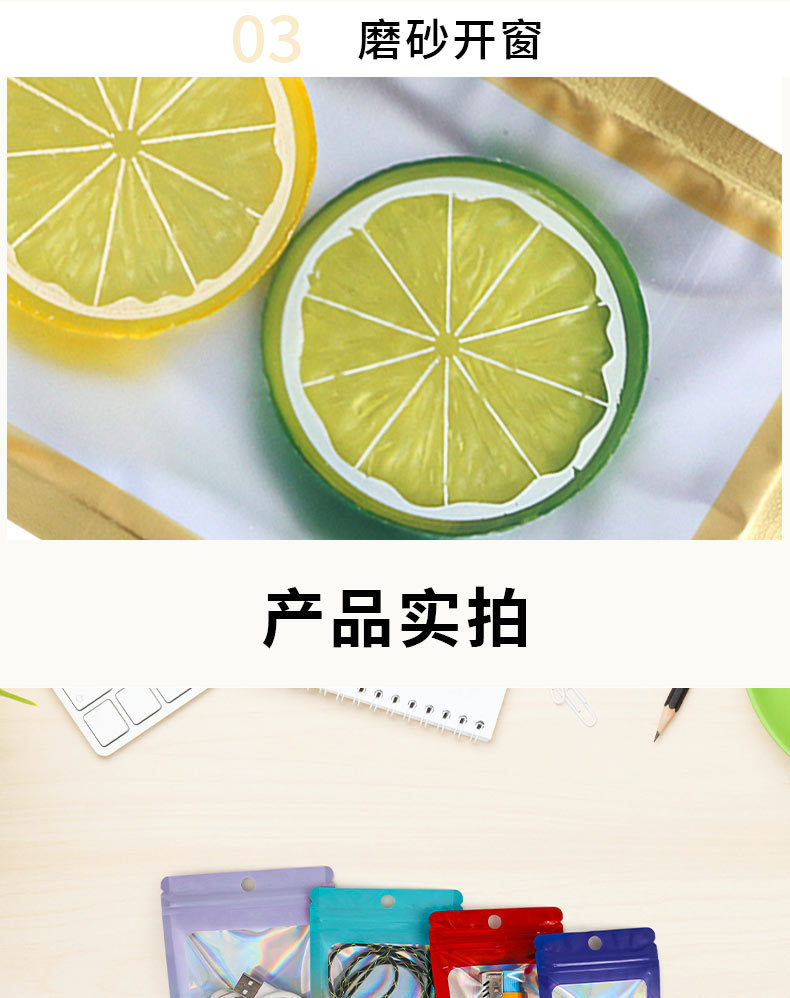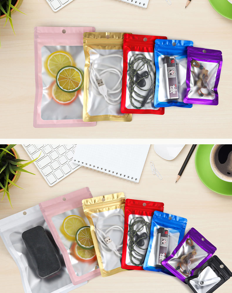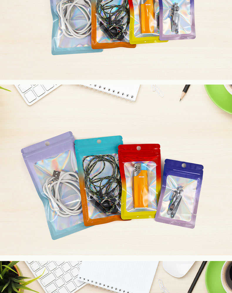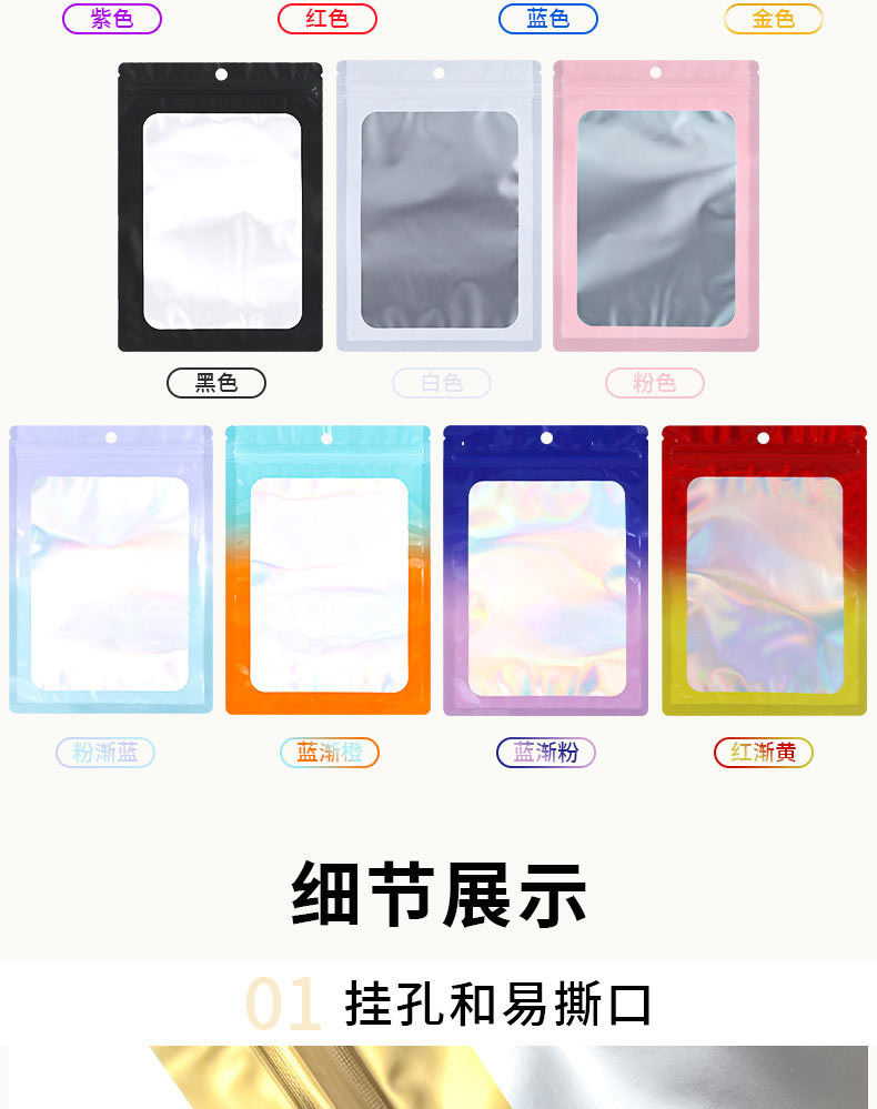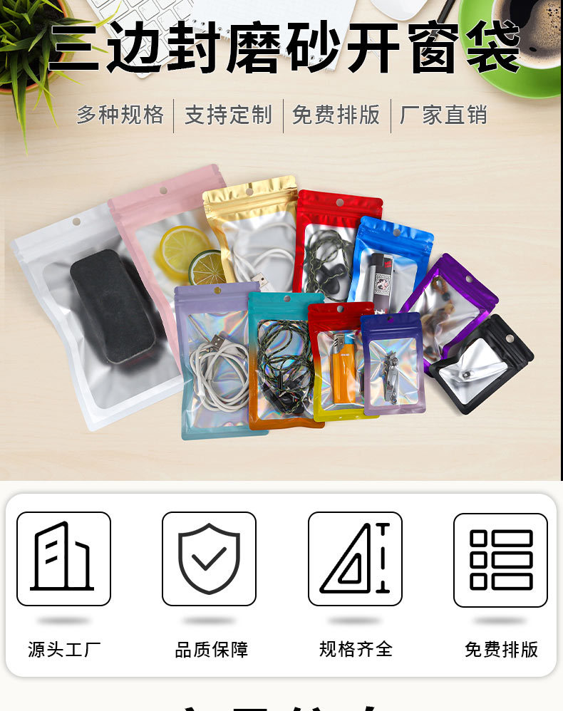 彩色阴阳自封袋渔具饰品镀铝开窗骨袋渐变三边封开窗自封包装袋