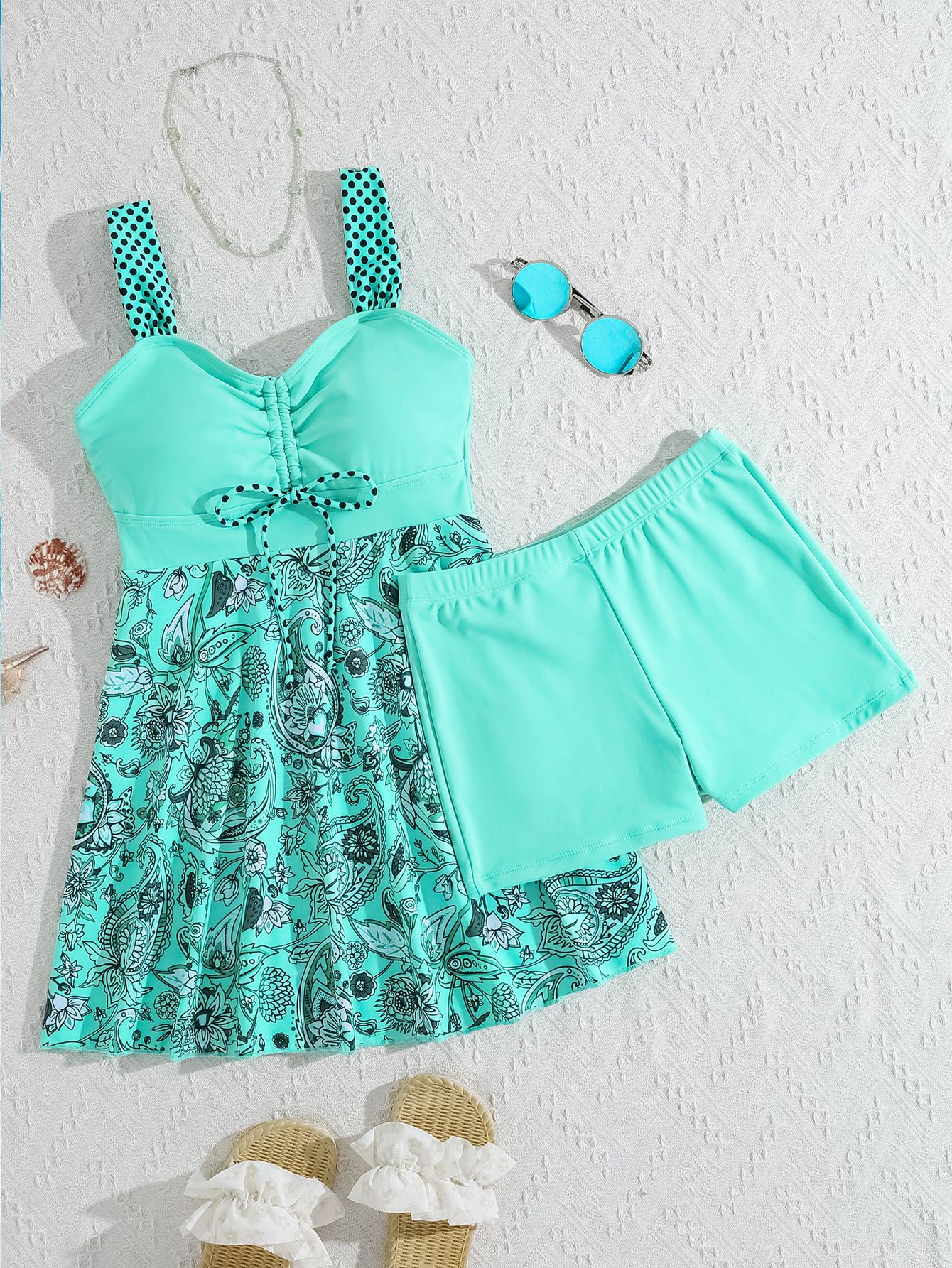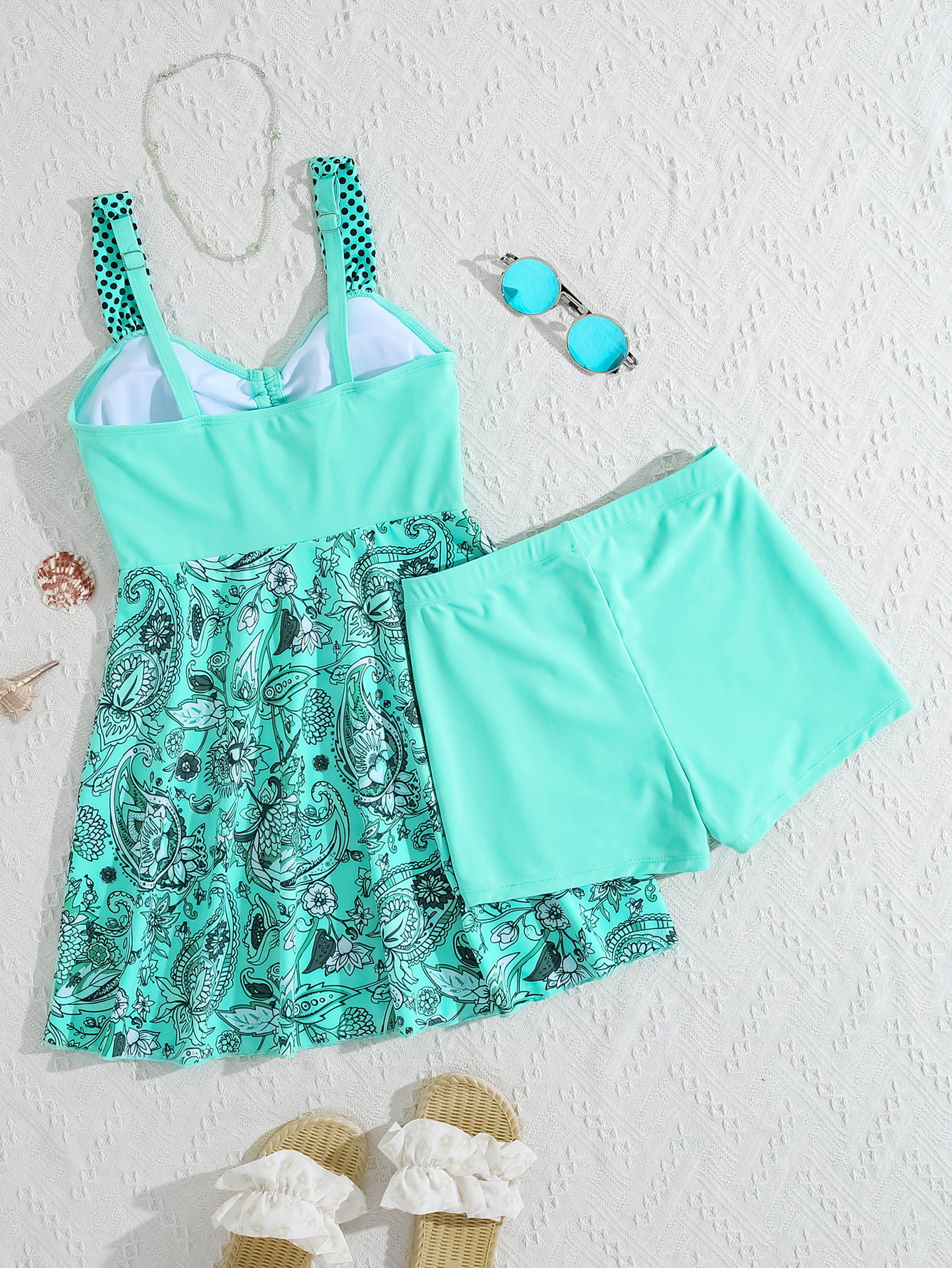 2026 신상 유럽 및 미국 무역용 탱키니 프린트 섹시 하이웨이스트 비키니 분리형 수영복 여성용스토어 가기