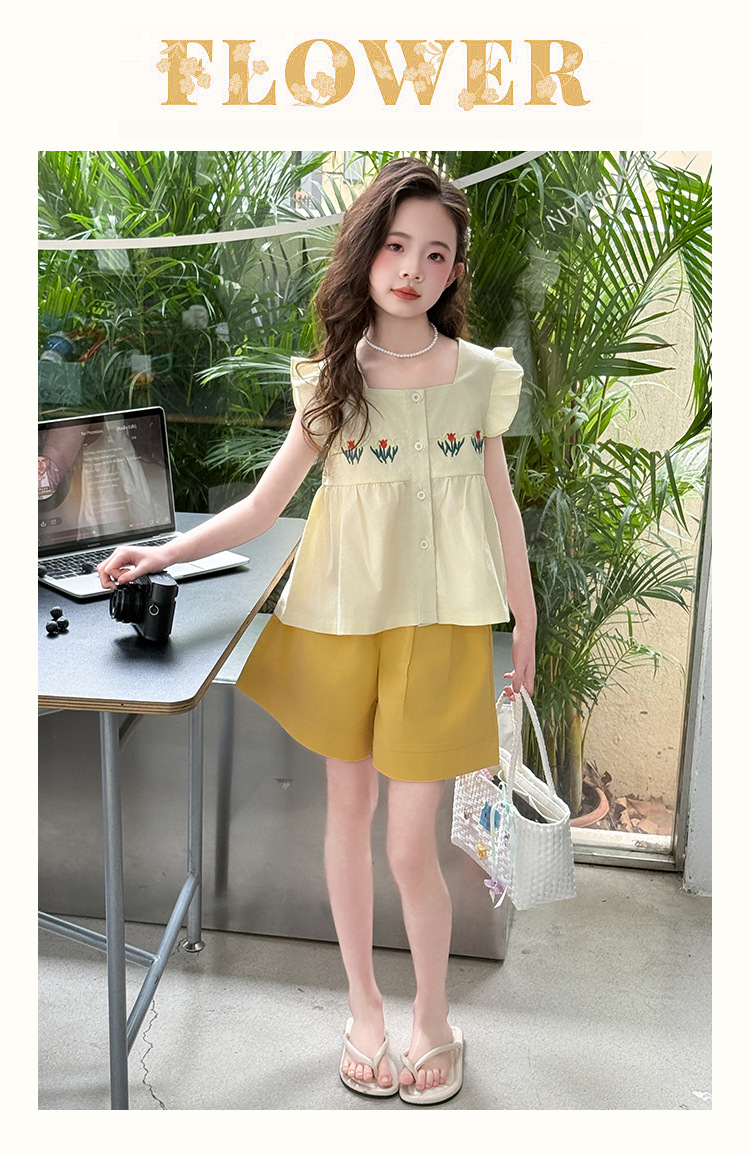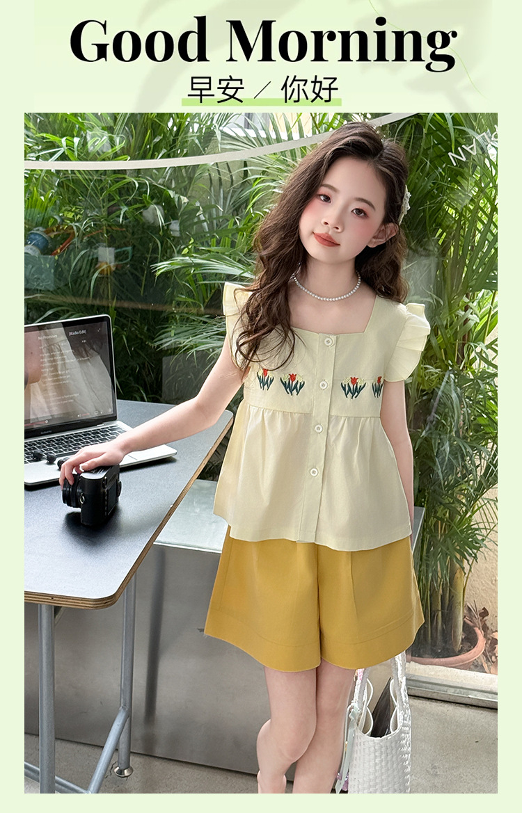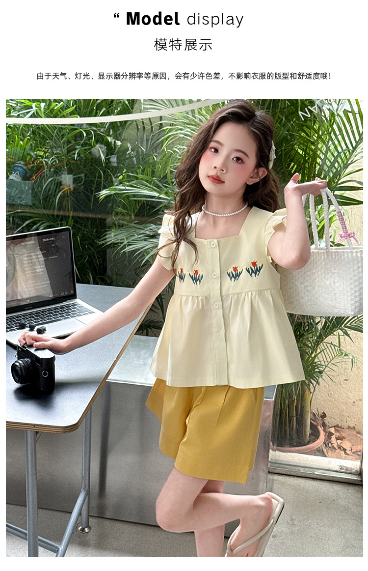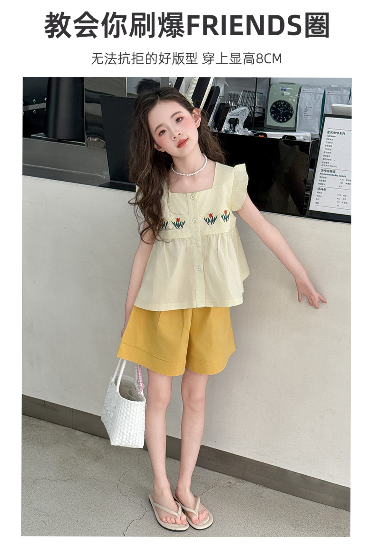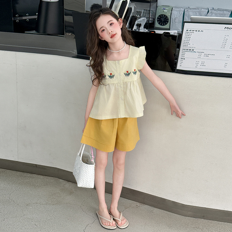 여자 세트 2025 새로운 여름 어린이 서양식 중대형 어린이 캐주얼 인형 셔츠 반바지 투피스 한국 스타일 트렌디스토어 가기