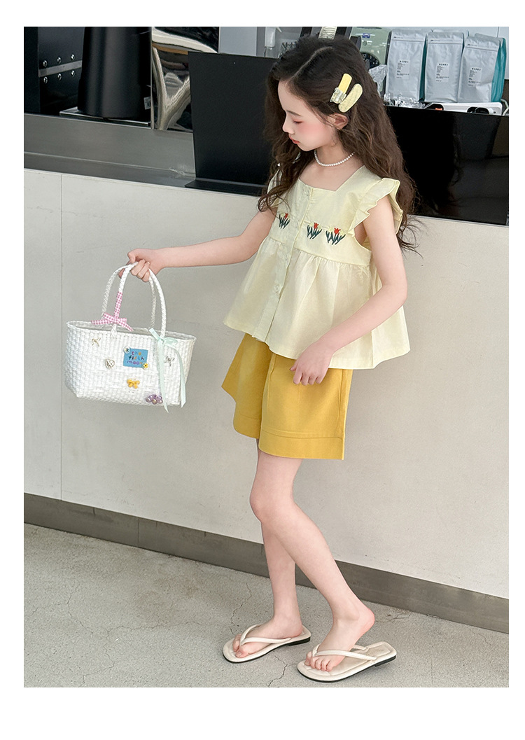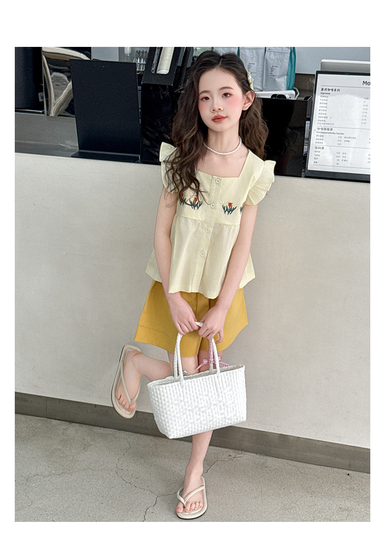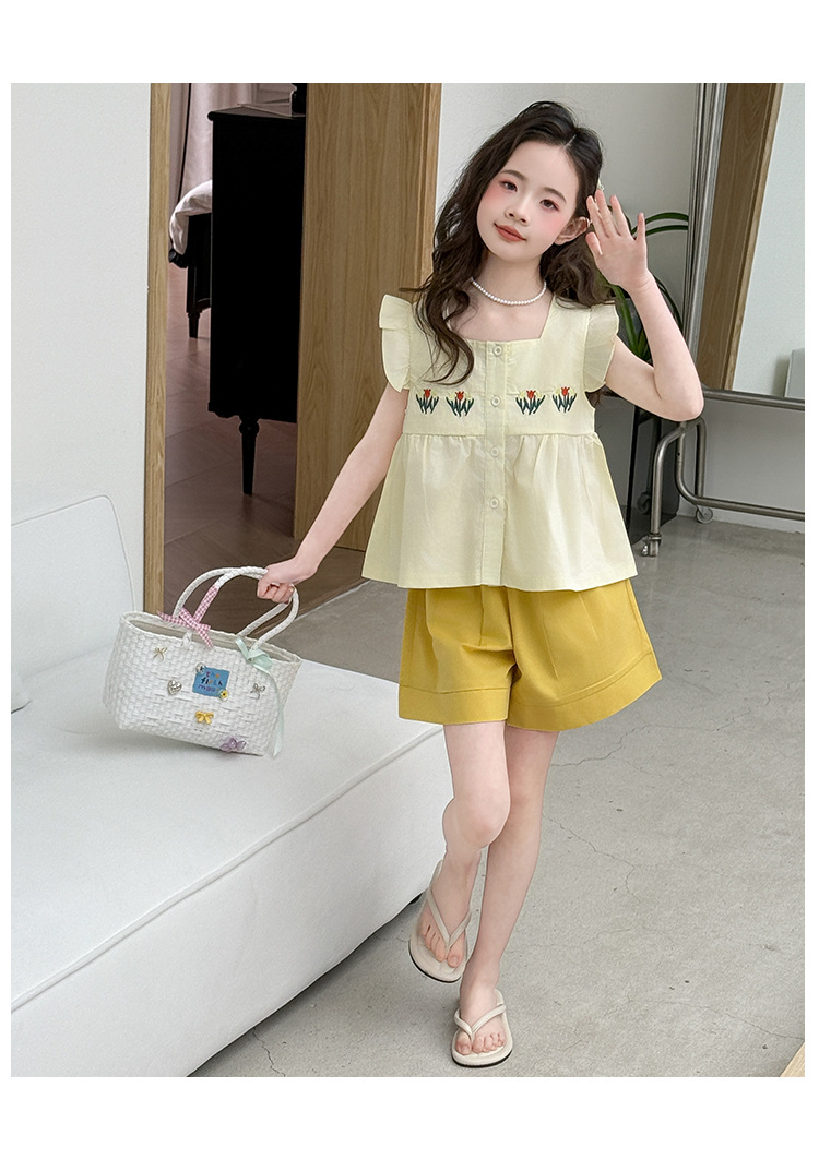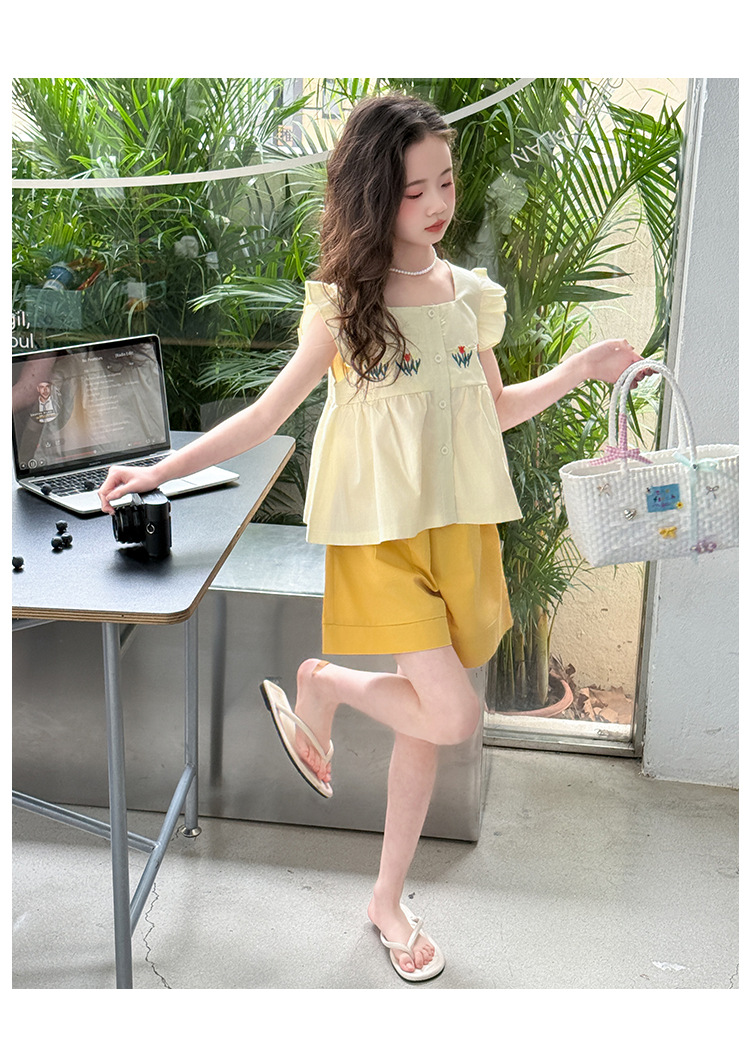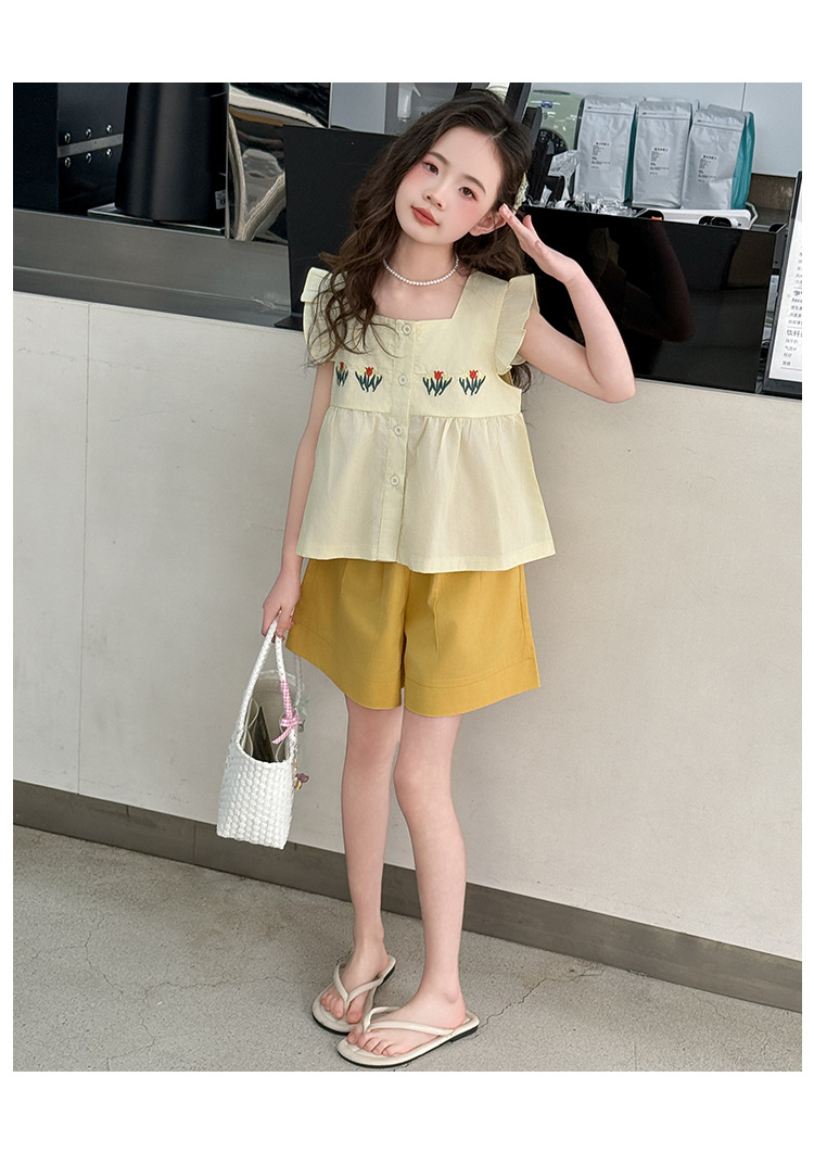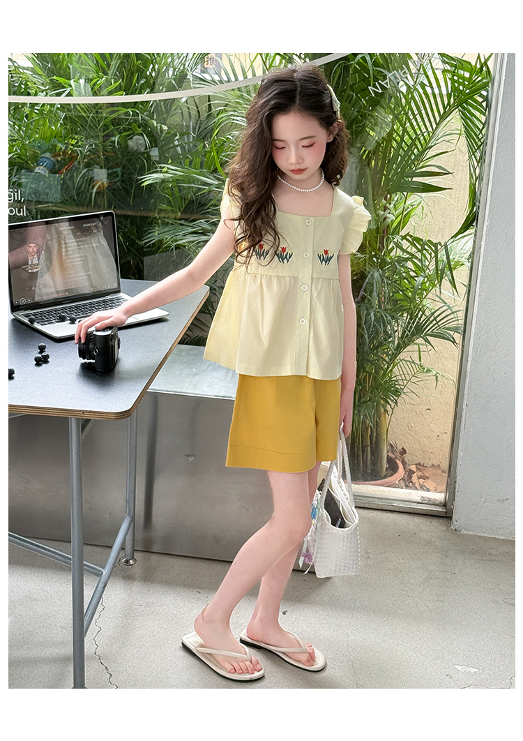 여자 세트 2025 새로운 여름 어린이 서양식 중대형 어린이 캐주얼 인형 셔츠 반바지 투피스 한국 스타일 트렌디스토어 가기