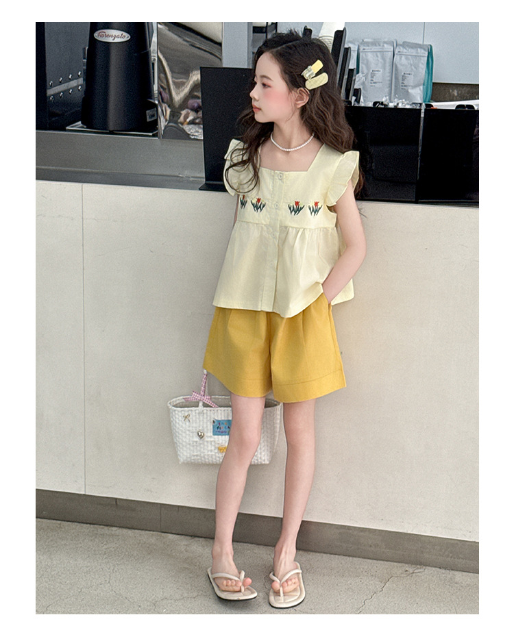 여자 세트 2025 새로운 여름 어린이 서양식 중대형 어린이 캐주얼 인형 셔츠 반바지 투피스 한국 스타일 트렌디