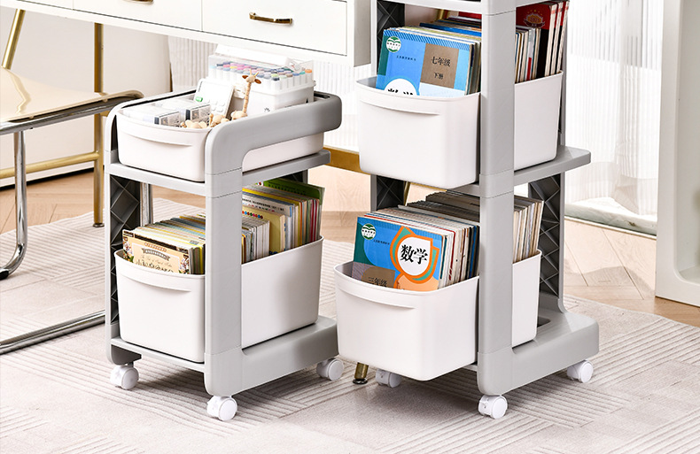 테이블 책장 보관 랙 움직일 수있는 학생 Schoolbag 도서 사무실 바닥 보관 랙 트롤리 (풀리 포함)스토어 가기