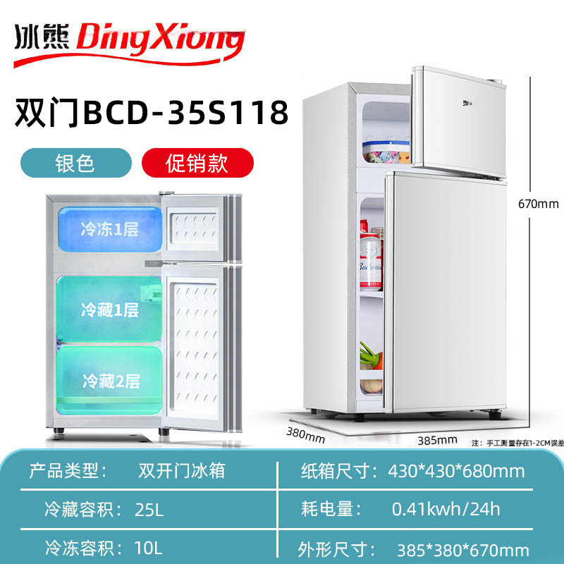 [집으로 배달] 냉장고 가정용 더블 도어 작은 2 인 미니 냉동고 냉동 기숙사 에너지 절약스토어 가기