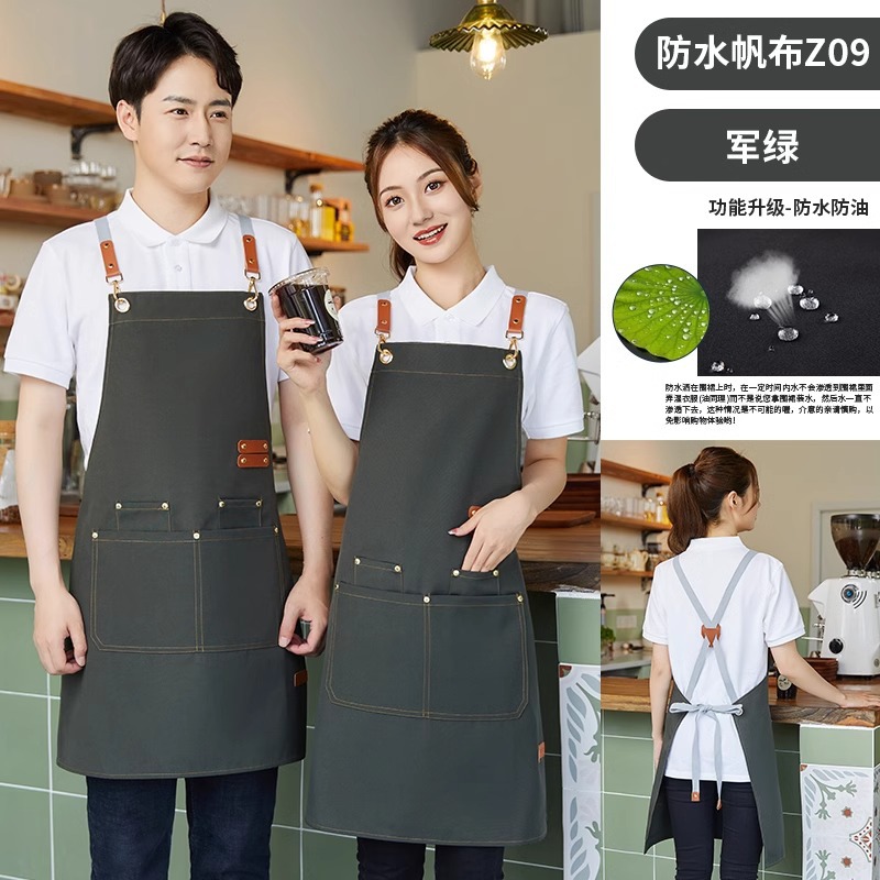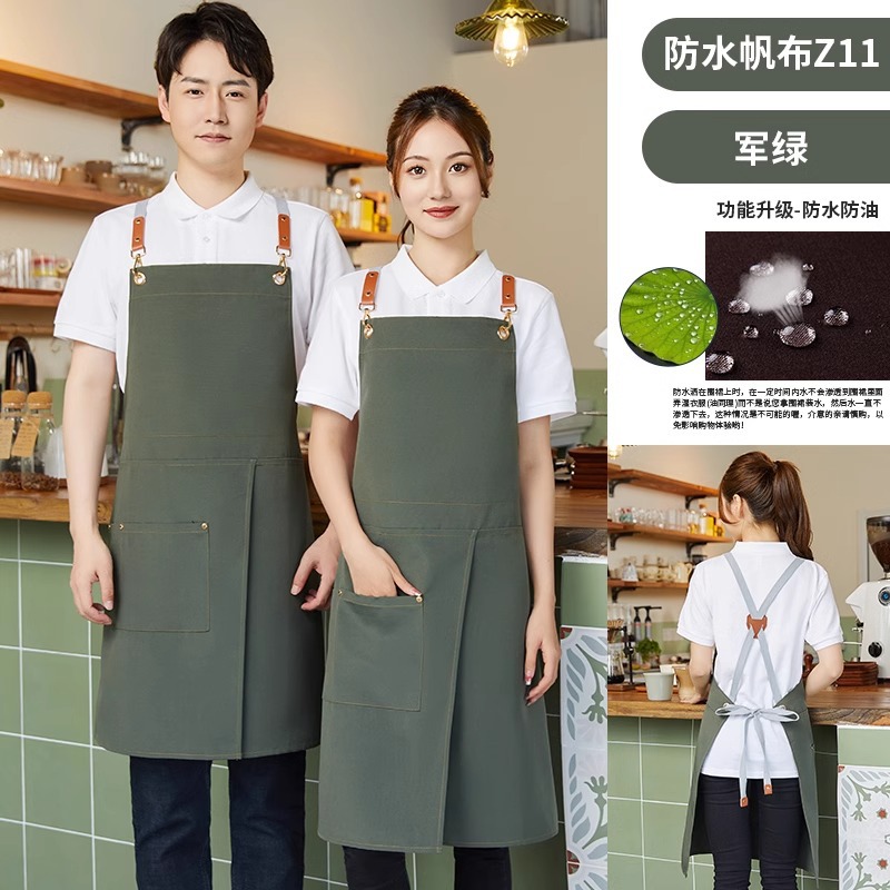 • Z11 가랑이 없는 앞치마 카키색 업그레이드 캔버스 새로운 중국 스타일