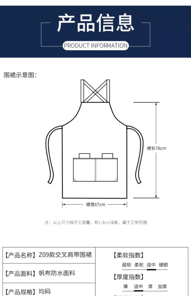 • Z11 가랑이 없는 앞치마 네이비 블루-업그레이드된 캔버스 새로운 중국 스타일