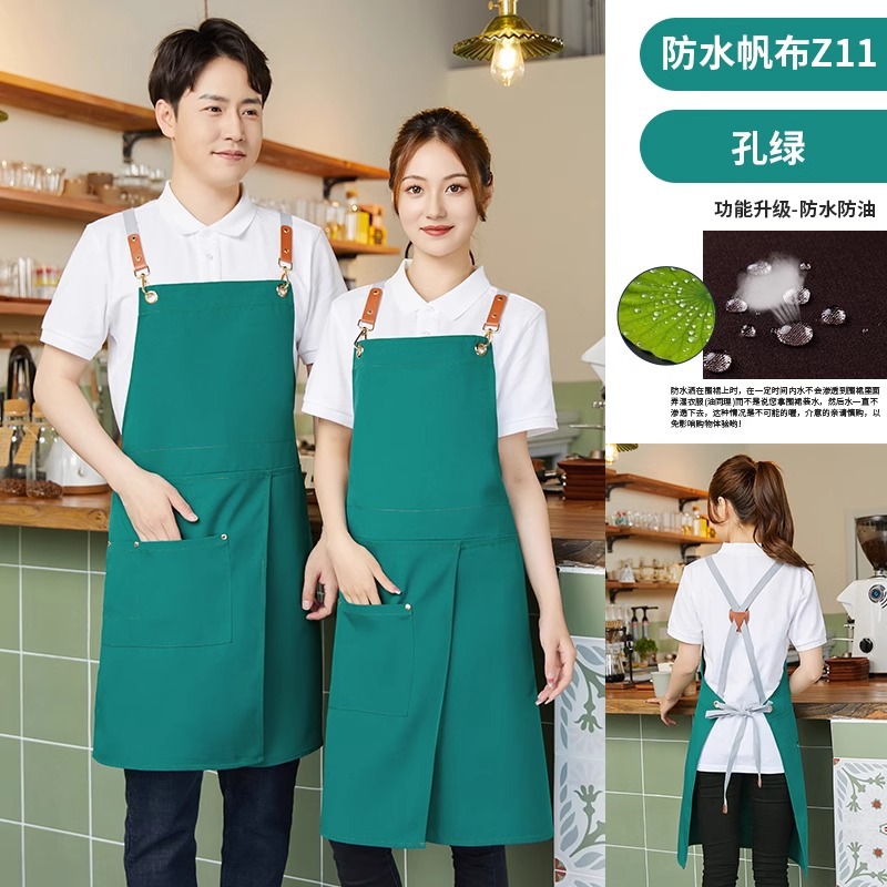 • Z11 가랑이 없는 앞치마 짙은 녹색 - 업그레이드된 캔버스 새로운 중국 스타일
