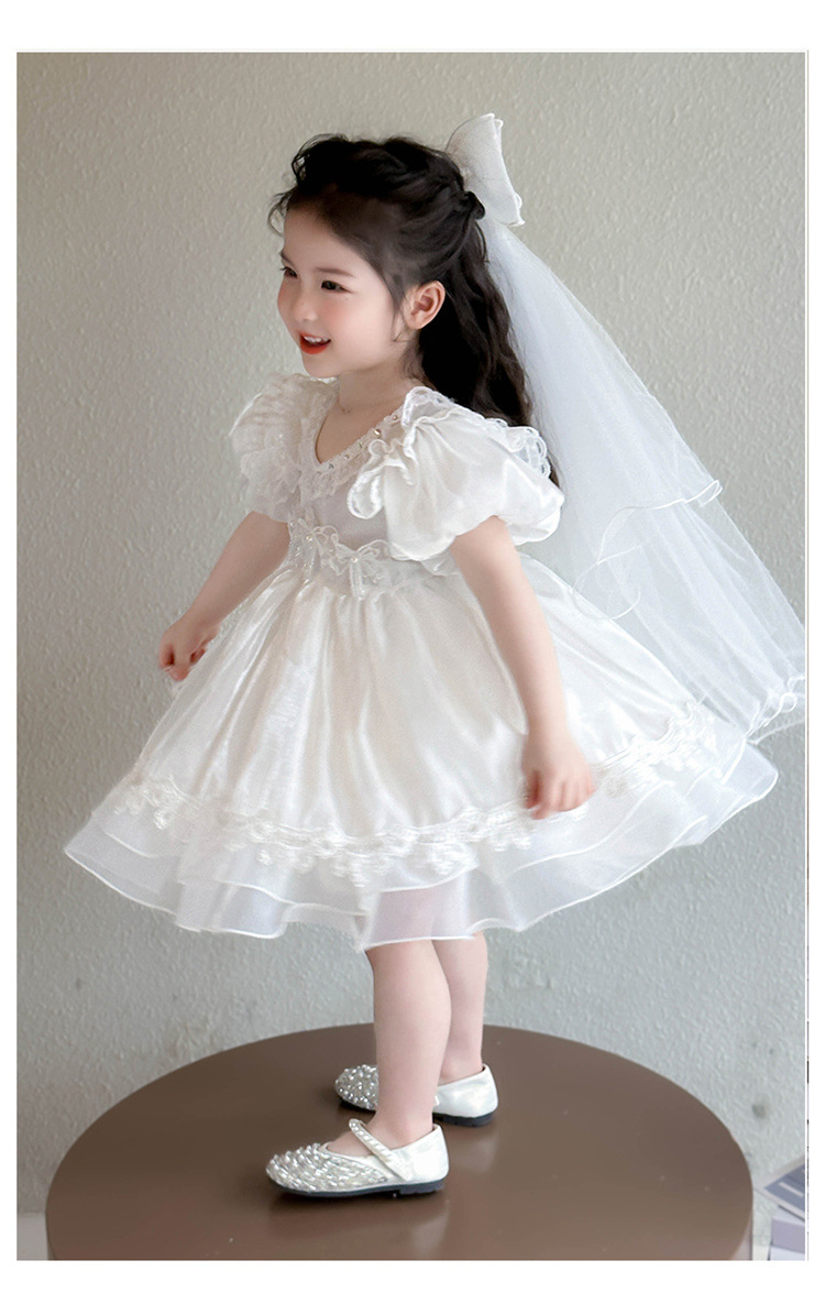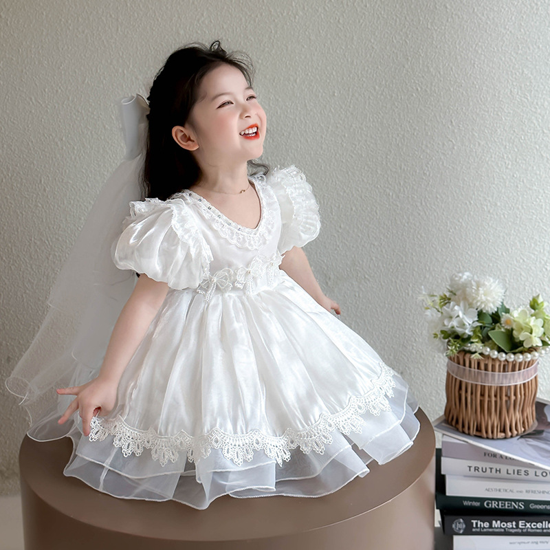여자 여름 드레스 2025 새로운 스타일 어린 소녀 레이스 퍼프 거즈 스커트 어린이 공주 드레스 스커트