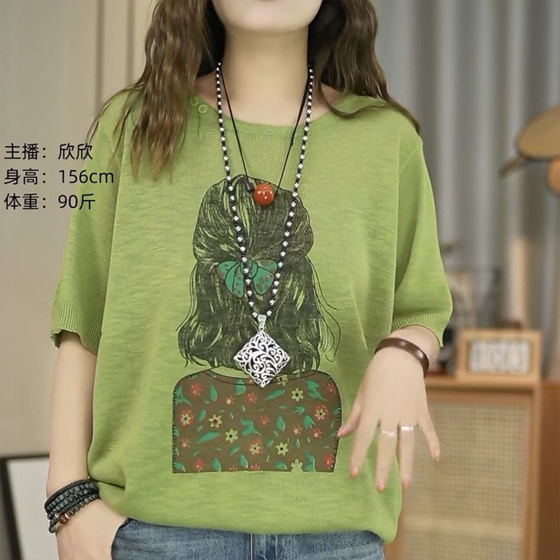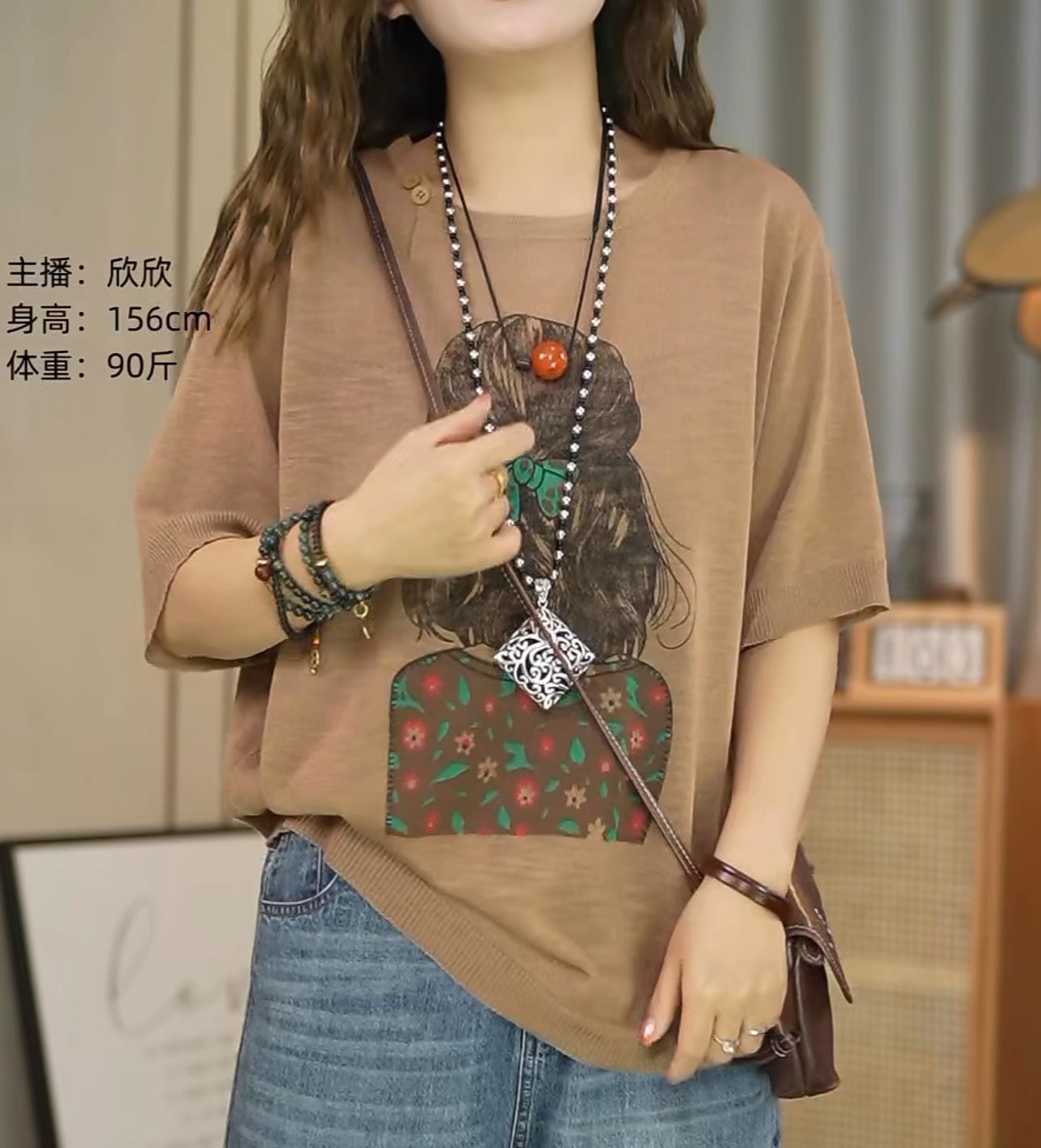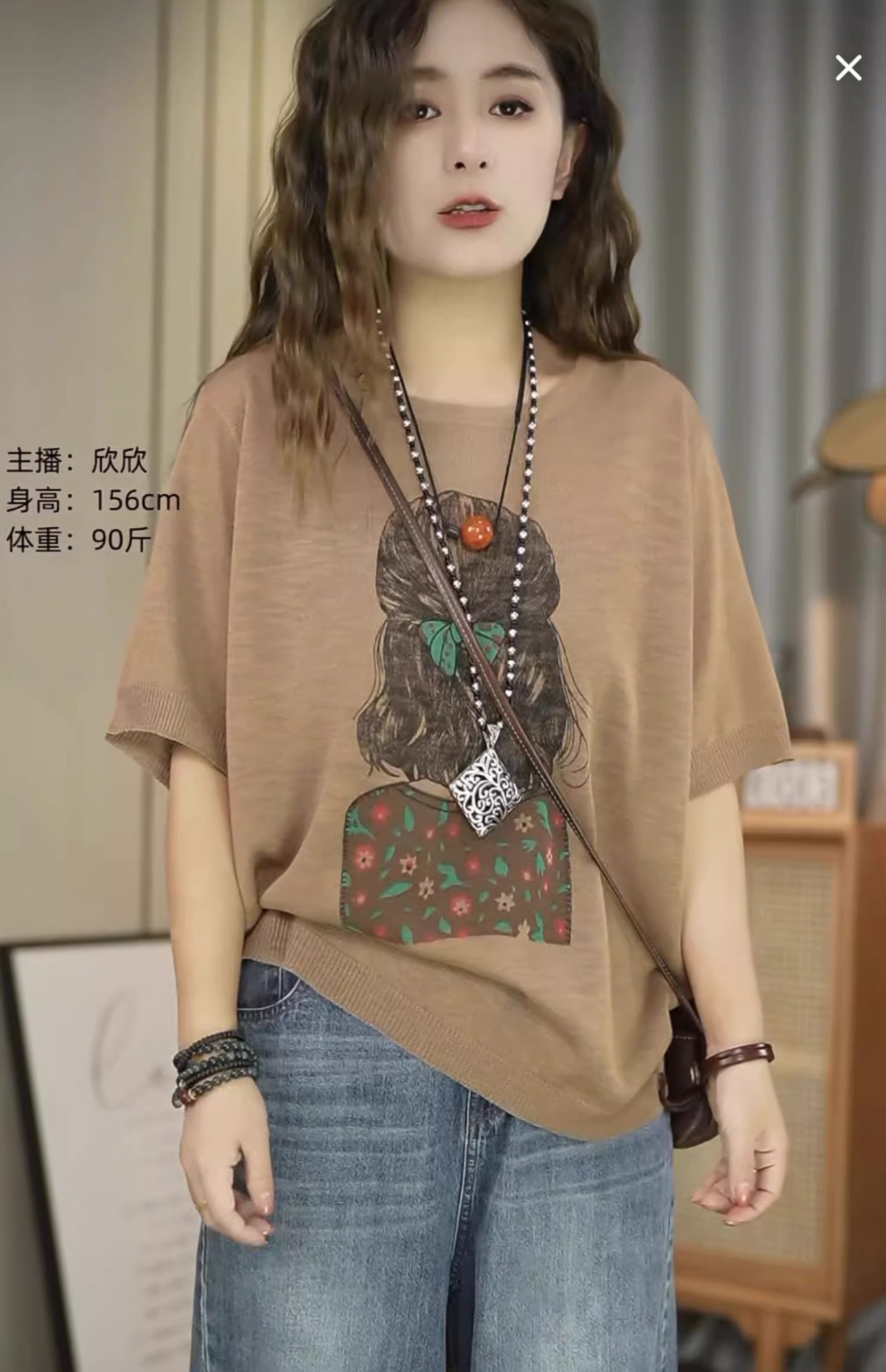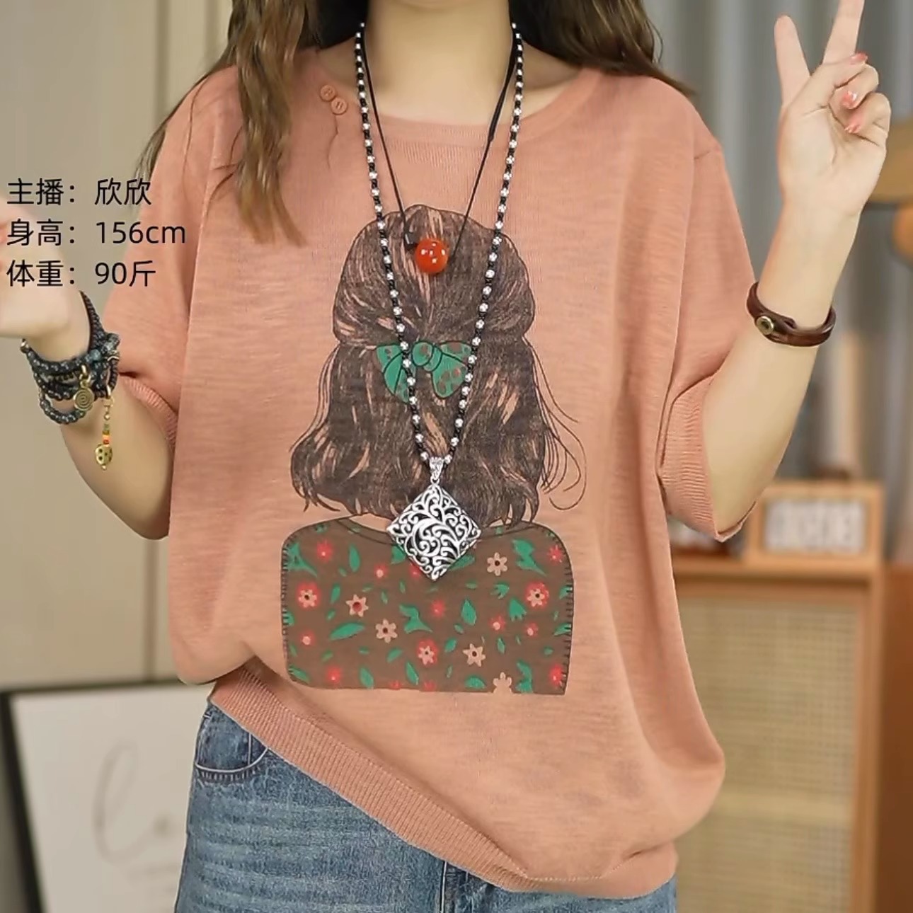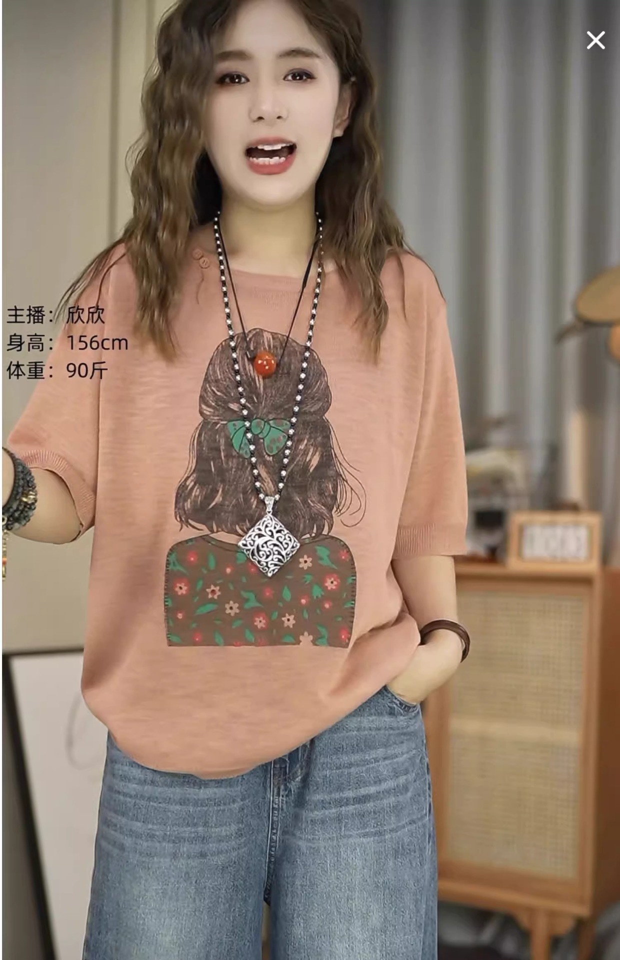 2025 여름 새로운 여성 반팔 티셔츠 아이스 실크 스웨터 플러스 사이즈 여성 의류 커버 고기 슬리밍 옷 폭발스토어 가기