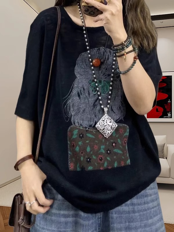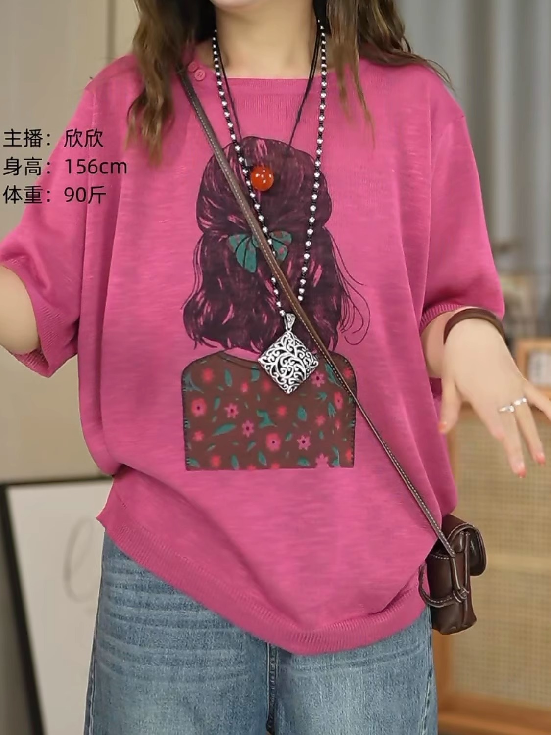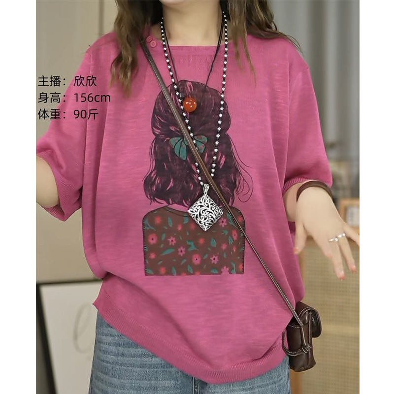 2025 여름 새로운 여성 반팔 티셔츠 아이스 실크 스웨터 플러스 사이즈 여성 의류 커버 고기 슬리밍 옷 폭발