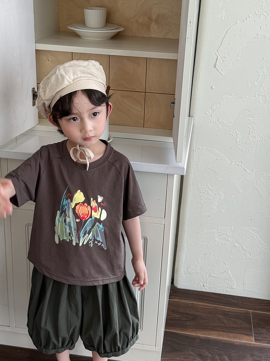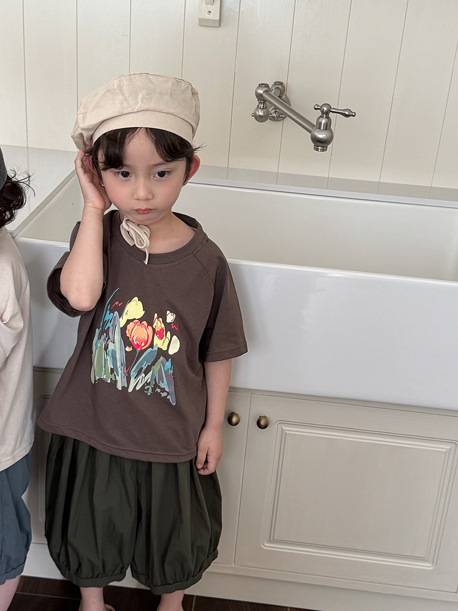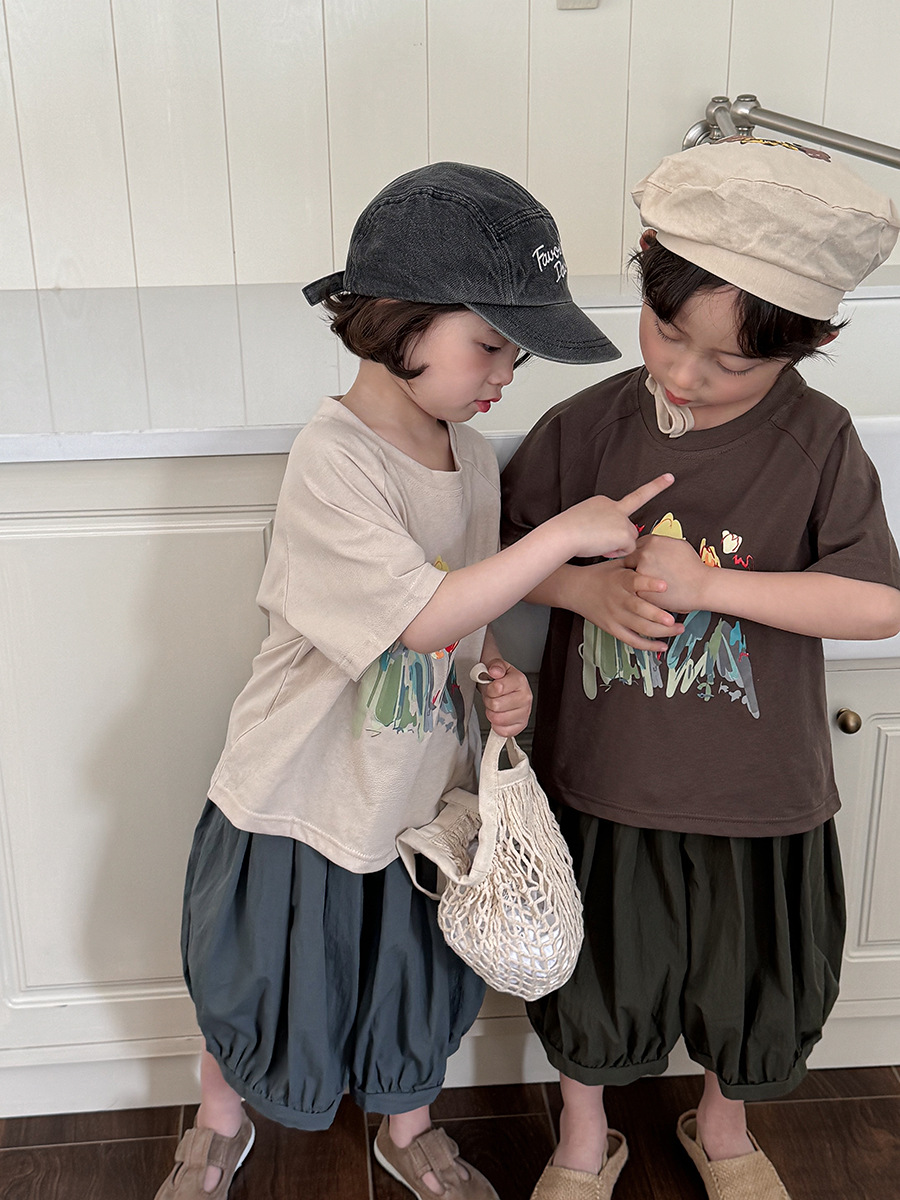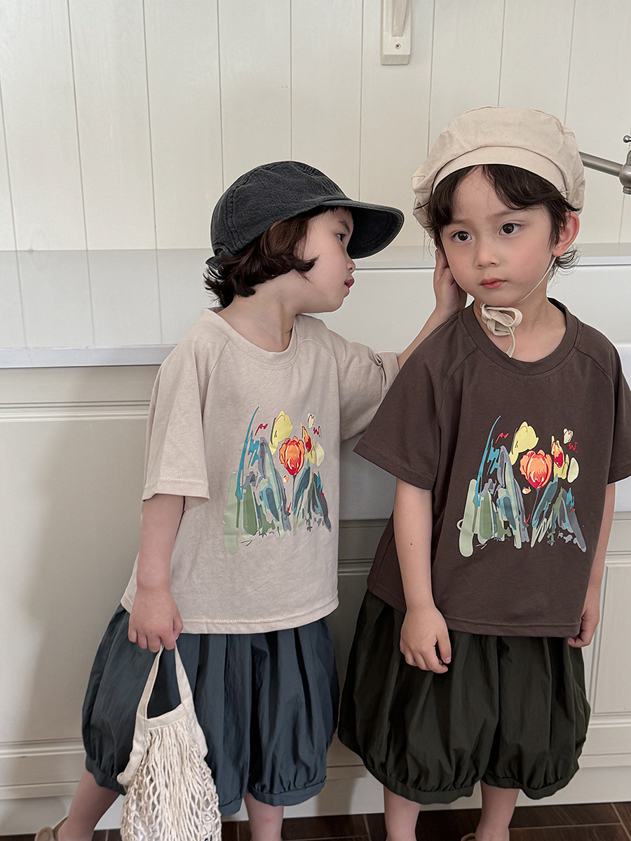 Jiaye 어린이 2025 년 어린이 여름 새 인쇄 반팔 티셔츠 아기 소년과 소녀 느슨한 반소매 셔츠 얇은 탑