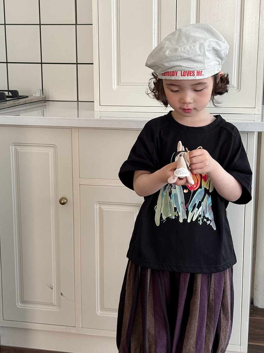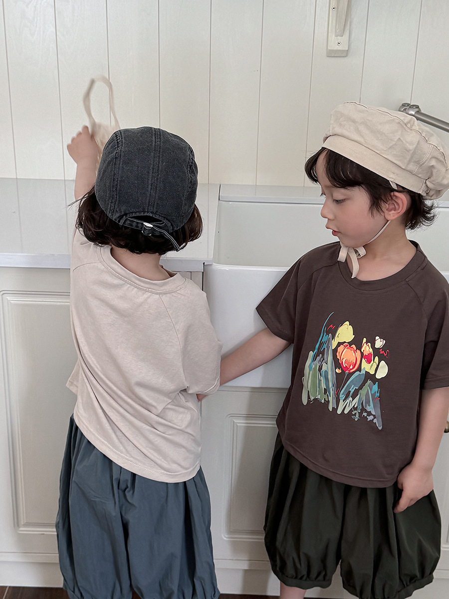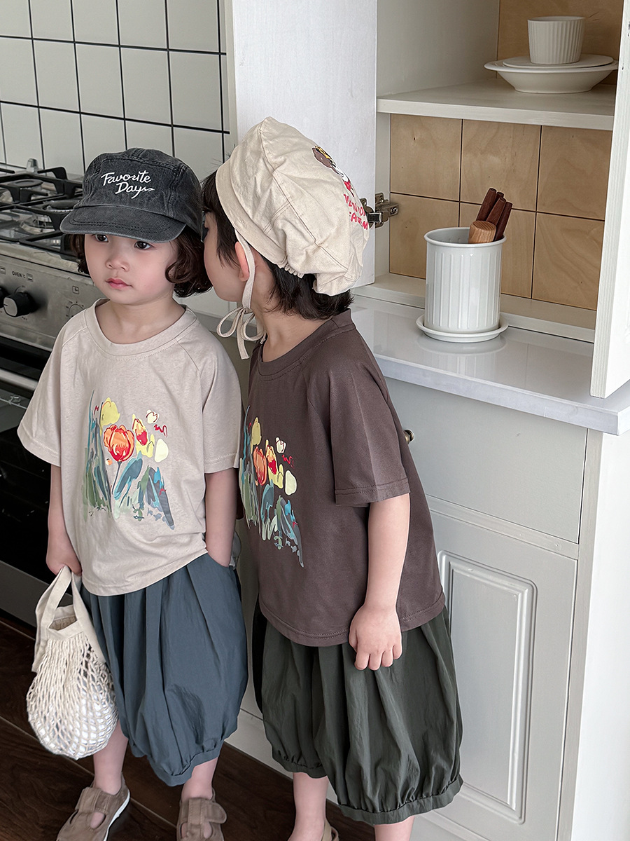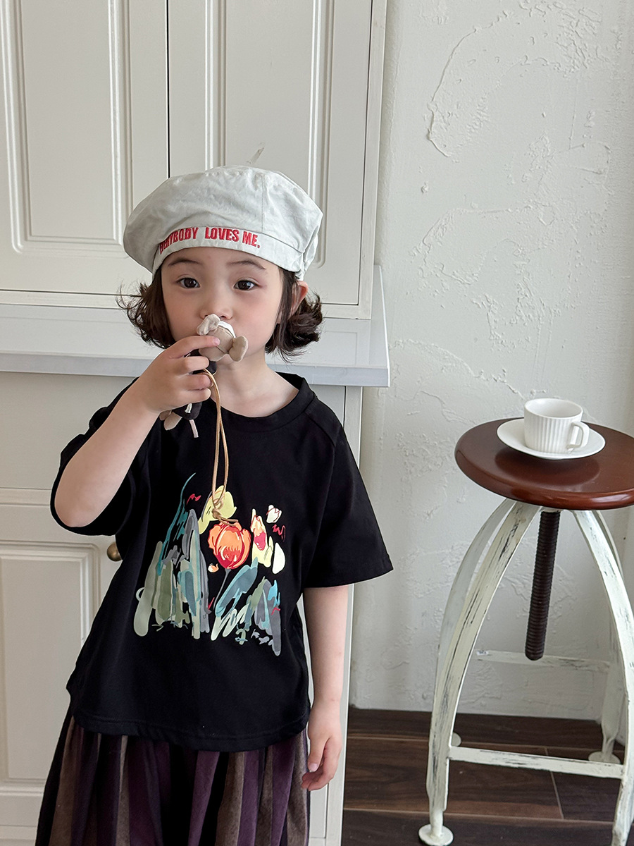 Jiaye 어린이 2025 년 어린이 여름 새 인쇄 반팔 티셔츠 아기 소년과 소녀 느슨한 반소매 셔츠 얇은 탑
