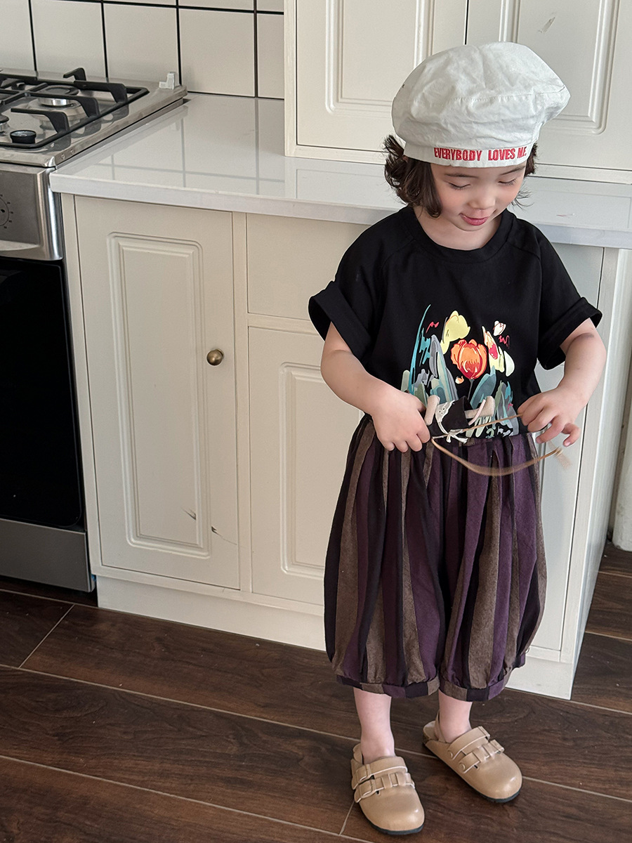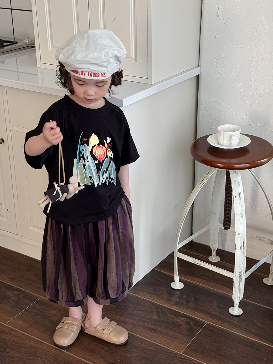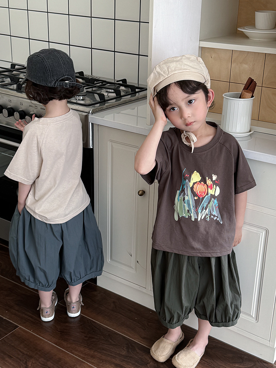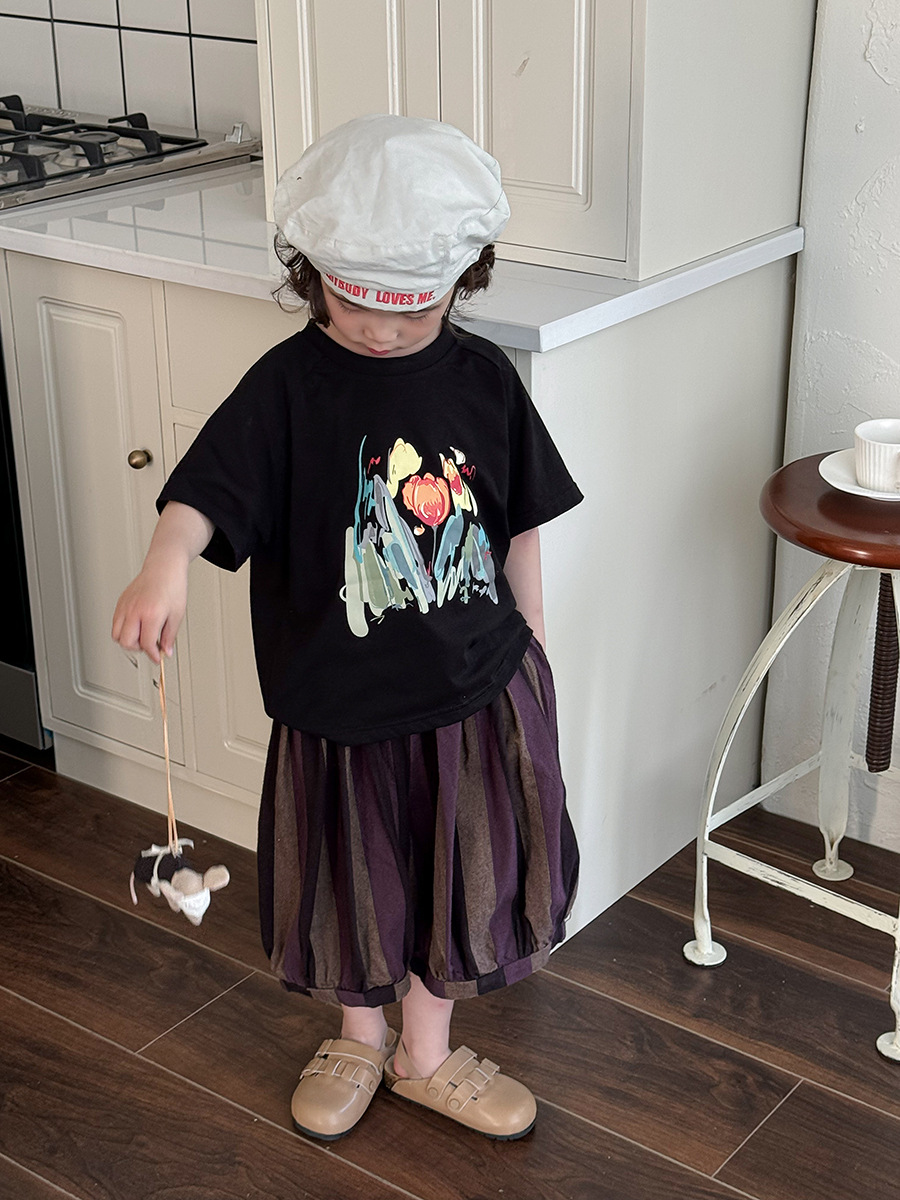 Jiaye 어린이 2025 년 어린이 여름 새 인쇄 반팔 티셔츠 아기 소년과 소녀 느슨한 반소매 셔츠 얇은 탑