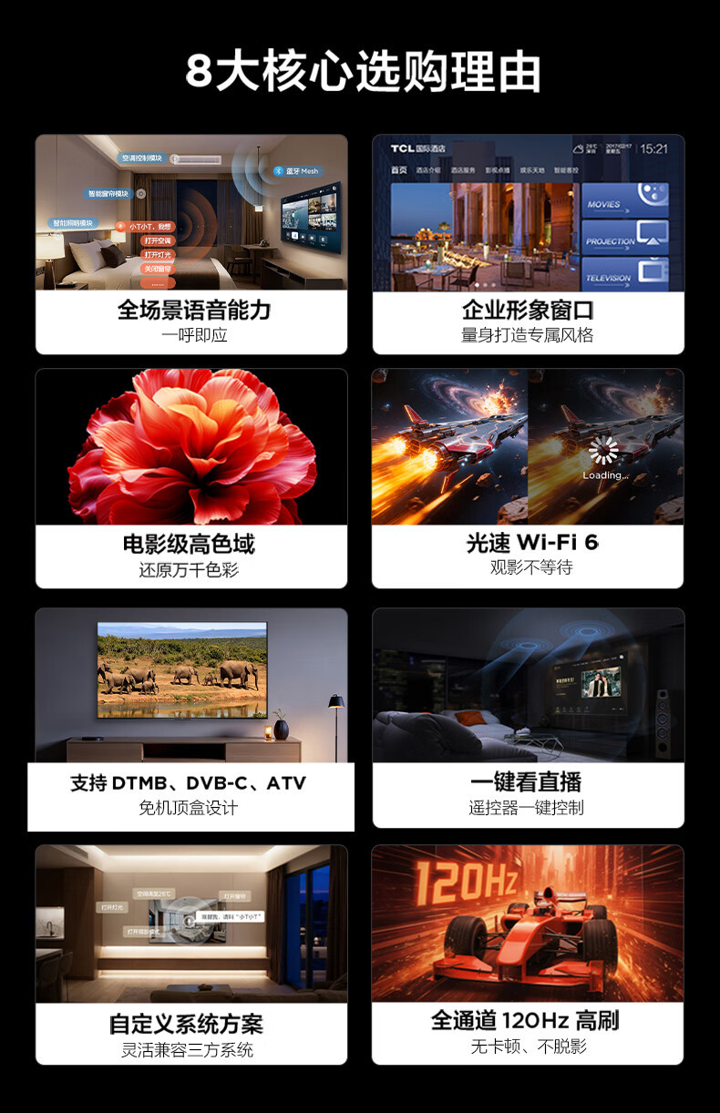 TCL TV는 광고 없음, 대기 없음 98inch 딜레이 없음, 그림자 없는 4K 디스플레이, 다중 눈 보호 모드