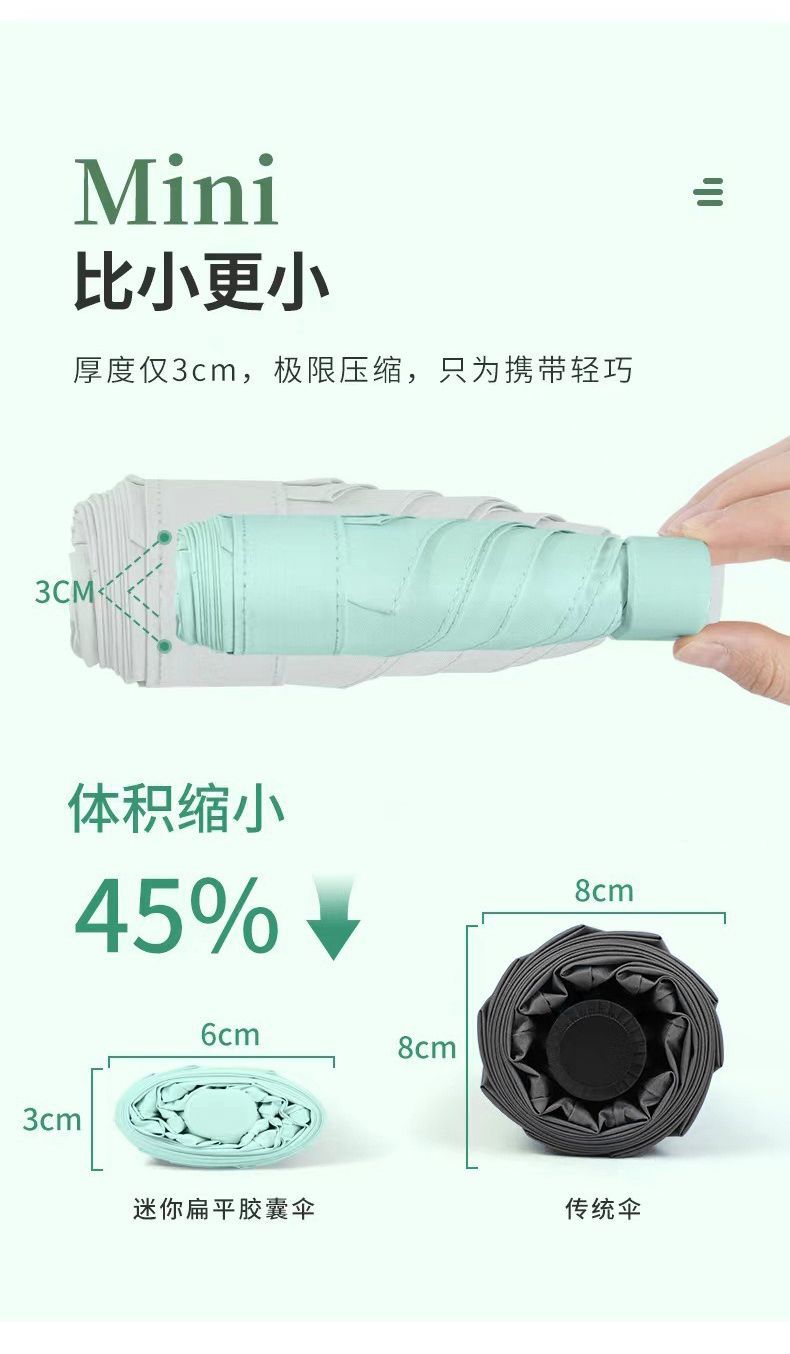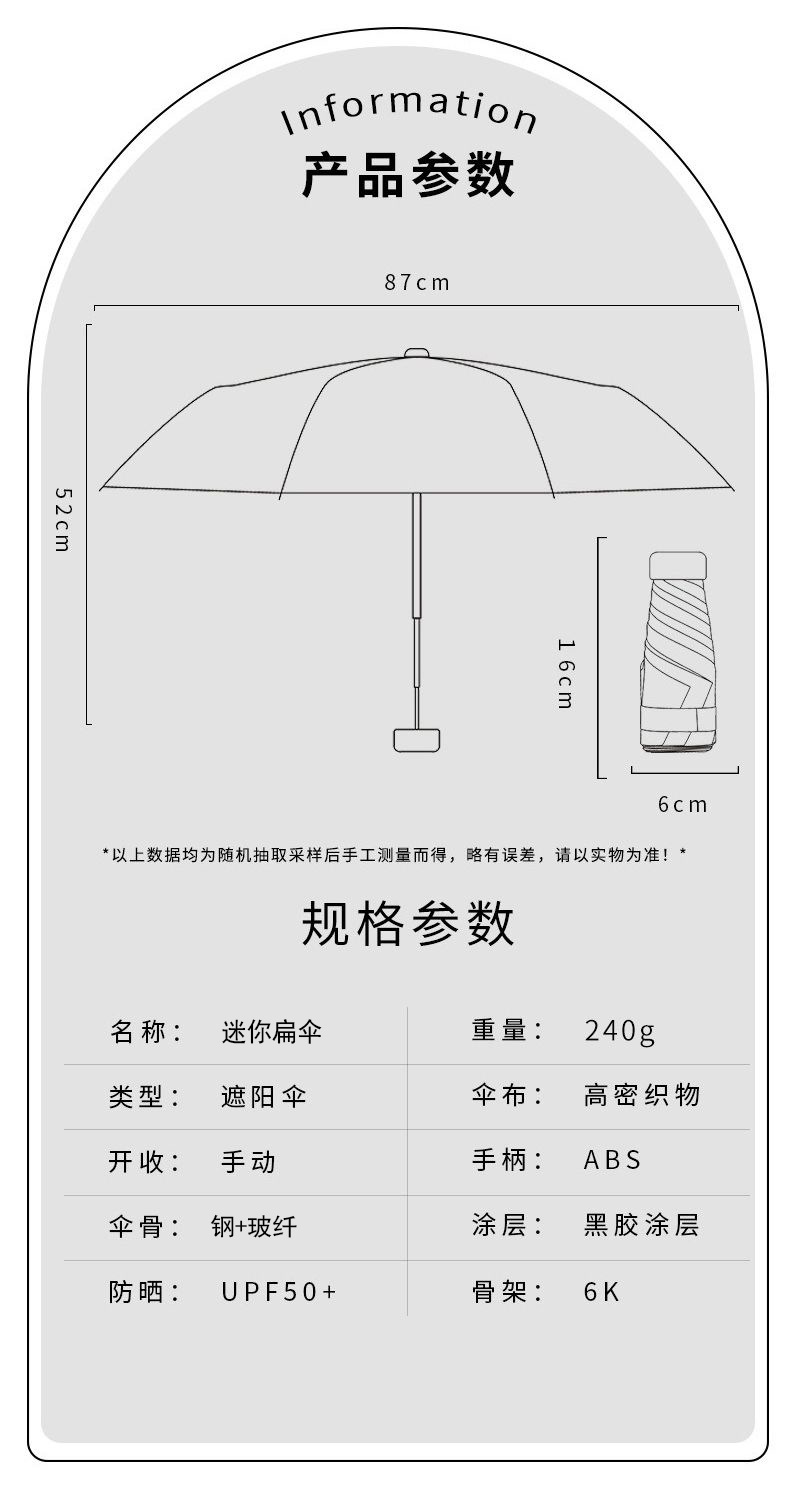 태양 우산 태양 보호 UV 보호 우산 미니 소형 휴대용 6 접는 우산 학생들을 위한 이중 사용 맑음 및 비
