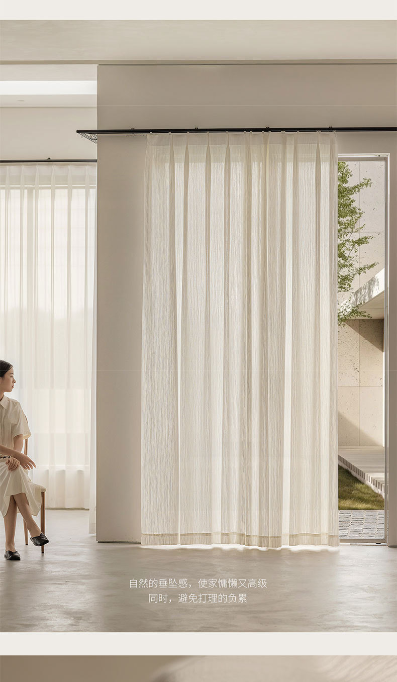 2025 새로운 세로 줄무늬 흰색 거즈 및 린넨 거즈 거실 발코니 베드룸 창 창 스크린 커튼 Shaoxing Keqiao는 빛을 투과하지 않고 사람을 투과하지 않습니다.
