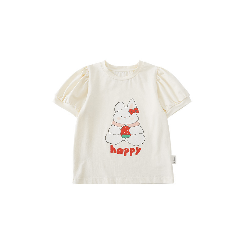 Wulibuyi 소녀 빨간 토끼 시리즈 정장 어린이 만화 드레스 아기 셔츠 여름 티셔츠 반바지