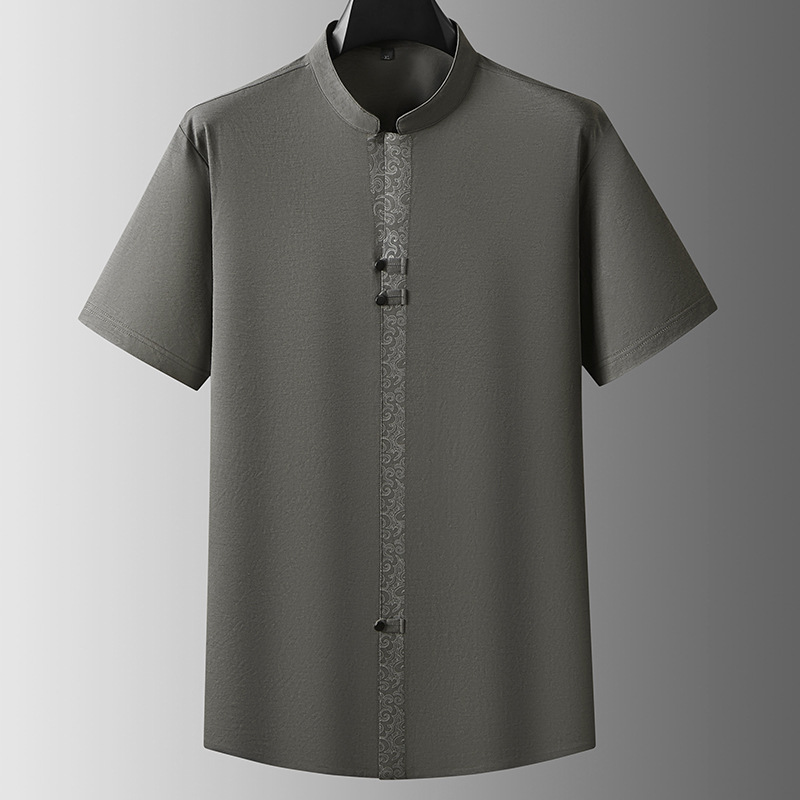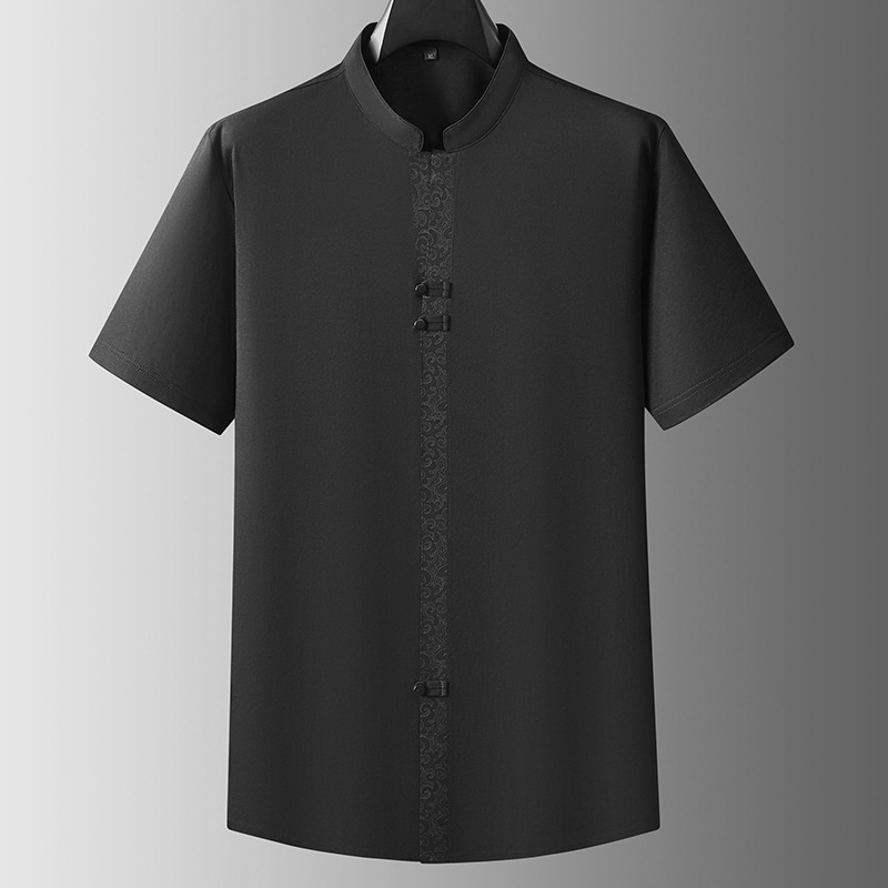 뚱뚱한 형제 2025 중국 스타일 수직 칼라 버클 반팔 셔츠 남자의 뚱뚱한 플러스 사이즈 여름 패션 캐주얼 셔츠