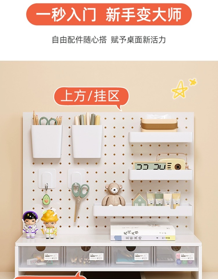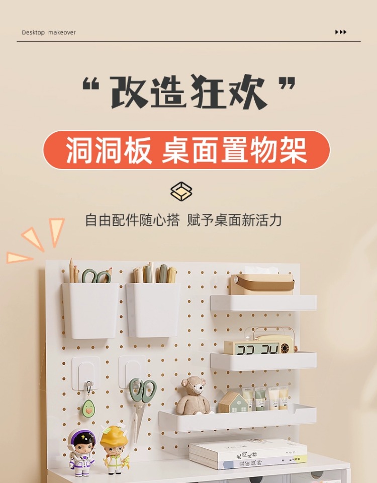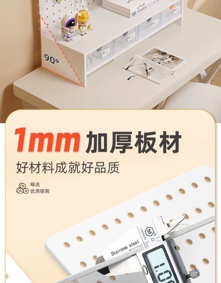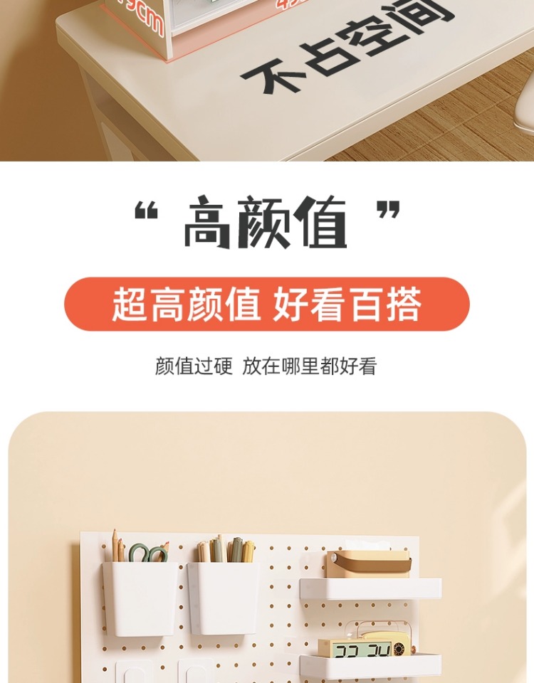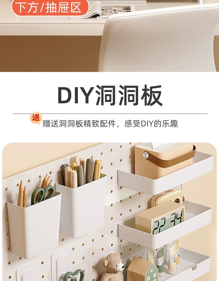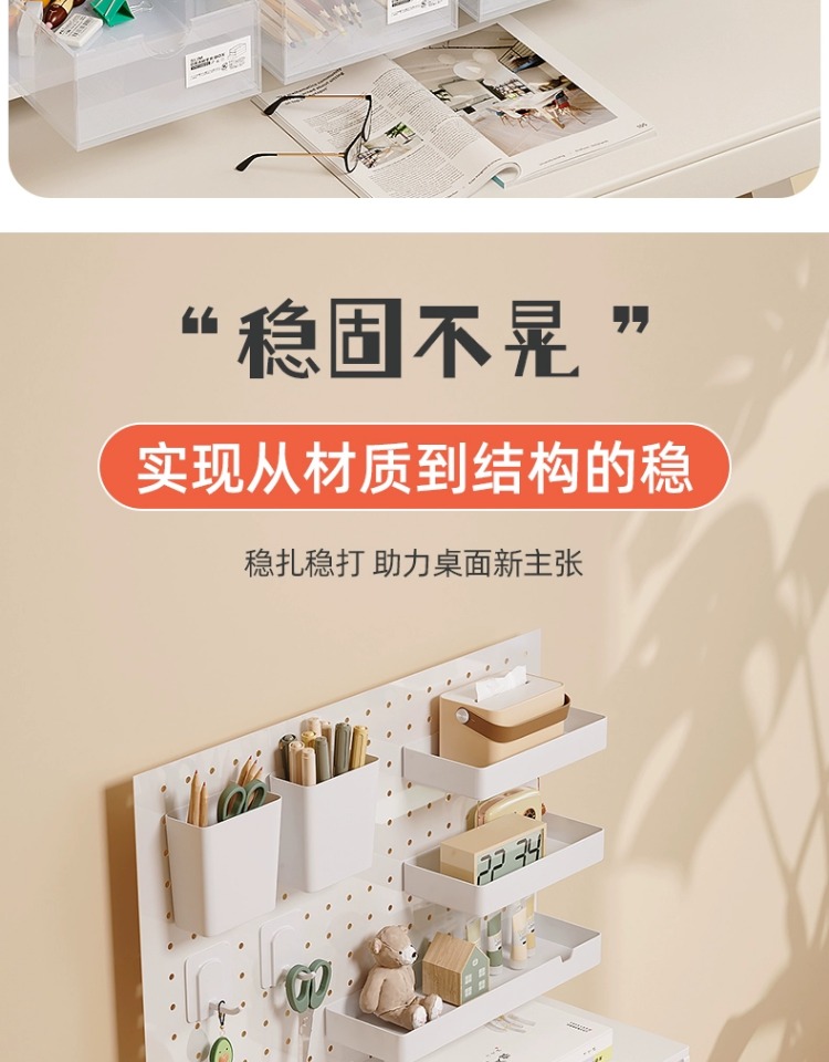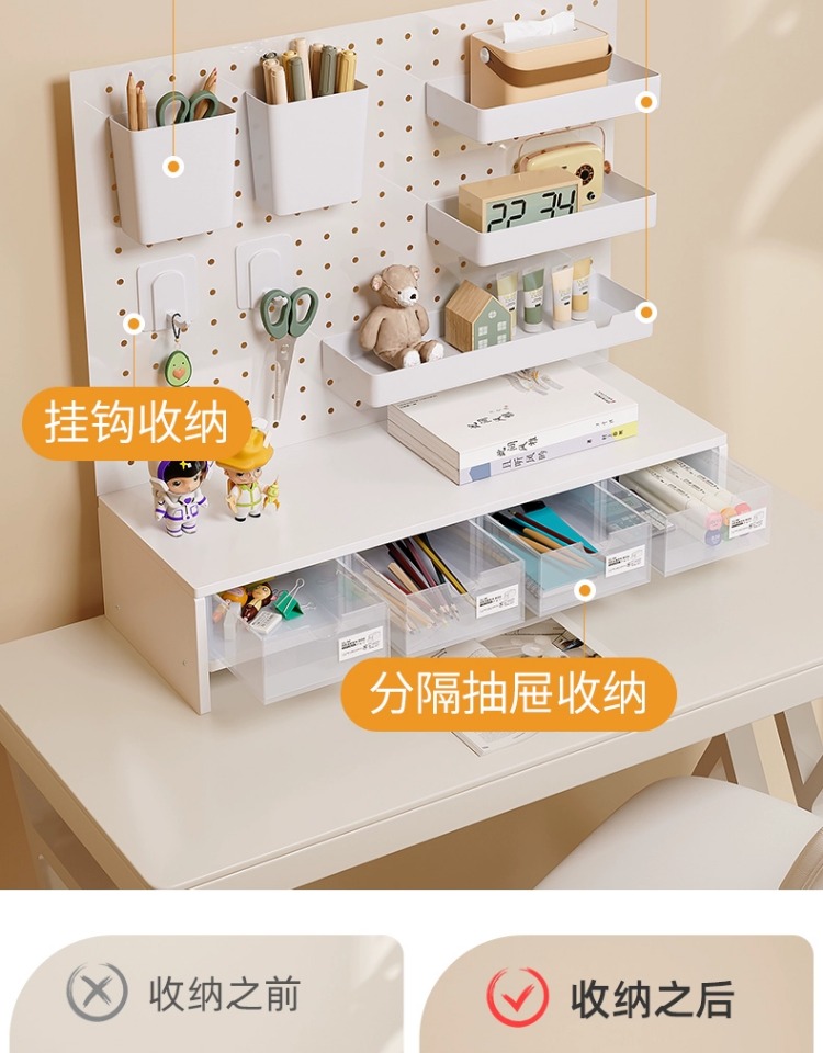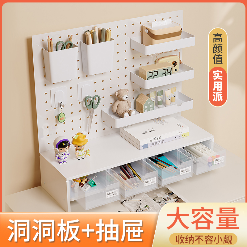 펀치 없는 데스크탑 홀 보드 수납 선반 금속 서랍 포함 사무실 책상 베젤 수납 선반 레이어드 선반스토어 가기