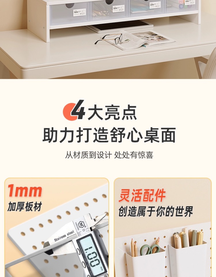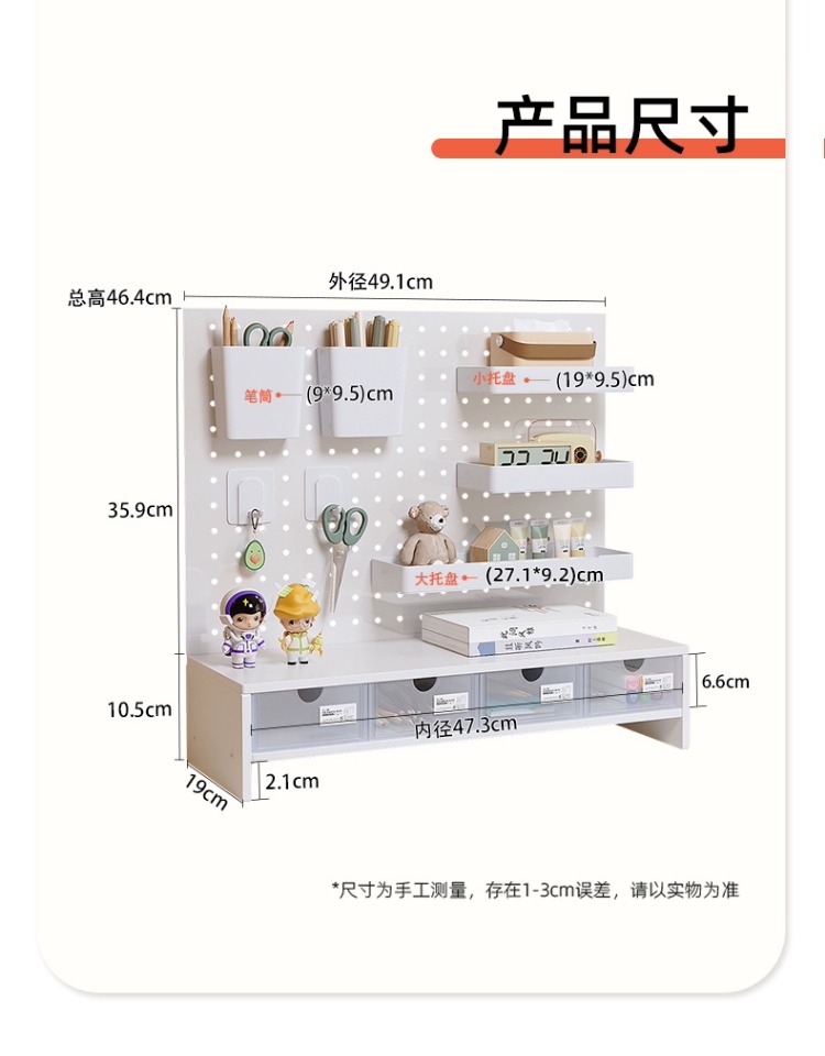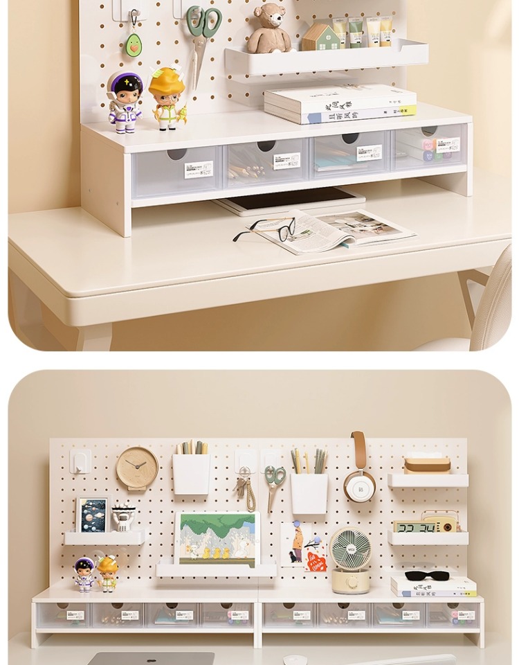 펀치 없는 데스크탑 홀 보드 수납 선반 금속 서랍 포함 사무실 책상 베젤 수납 선반 레이어드 선반