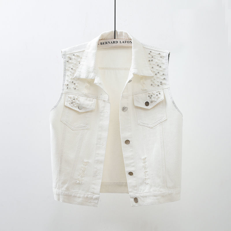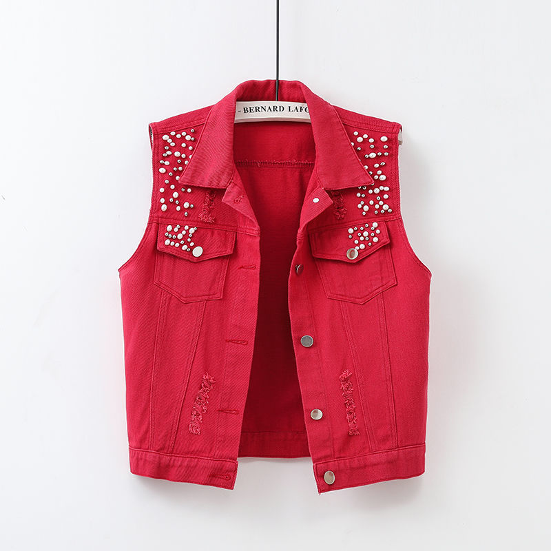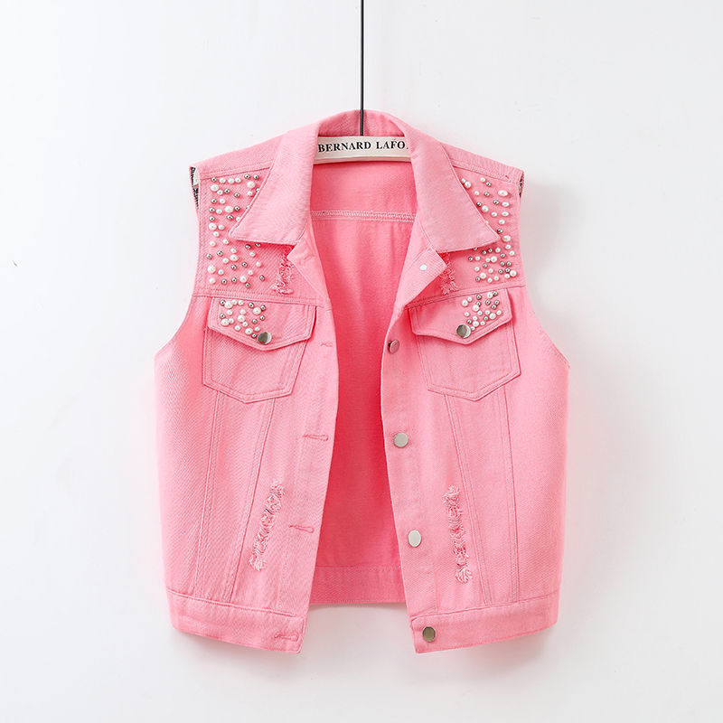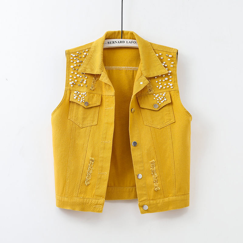 여성용 멀티 컬러 조끼 새로운 봄 여름 새로운 스타일 워시드 찢어진 구슬 민소매 재킷 슬림핏 다용도 조끼 탑 트렌디스토어 가기
