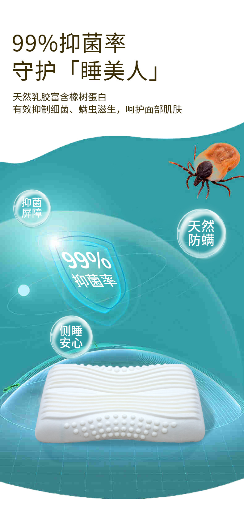 태국 천연 라텍스 베개, 성인용 라텍스 베개, 경추 베개 코어, 가정용 라텍스 베개, 진드기 방지 통기성 베개