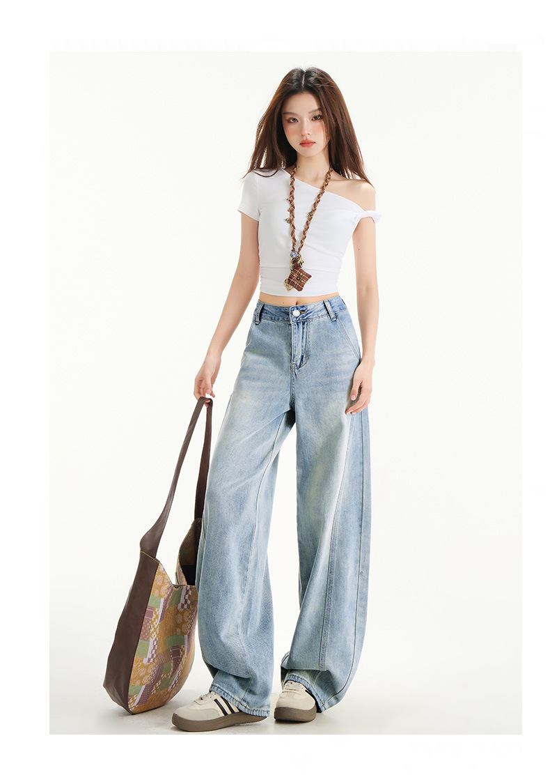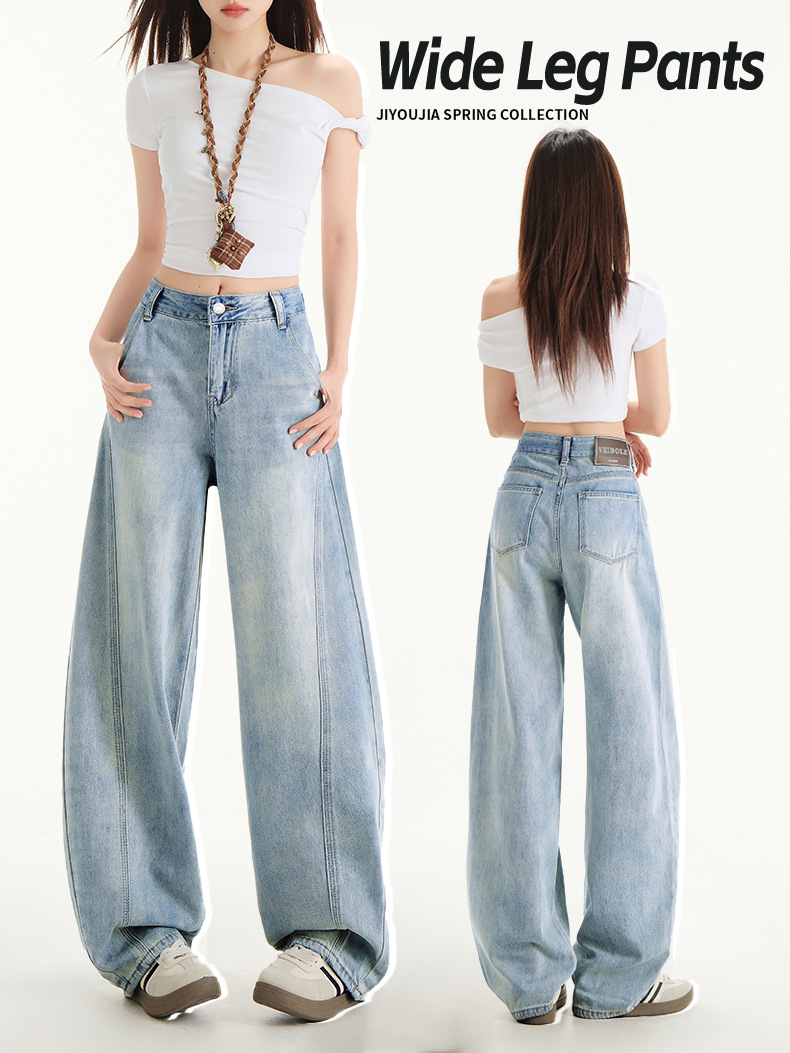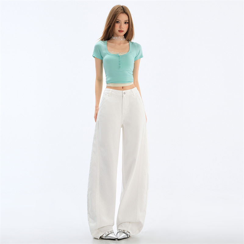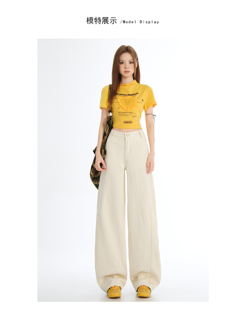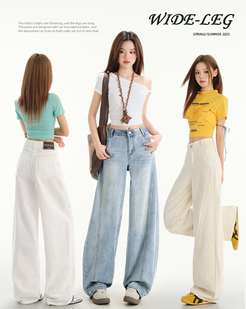 아이보리 느슨한 Machete 청바지 여성의 봄과 여름 2025 작은 남성을위한 새로운 높은 허리 슬림 핏 바지