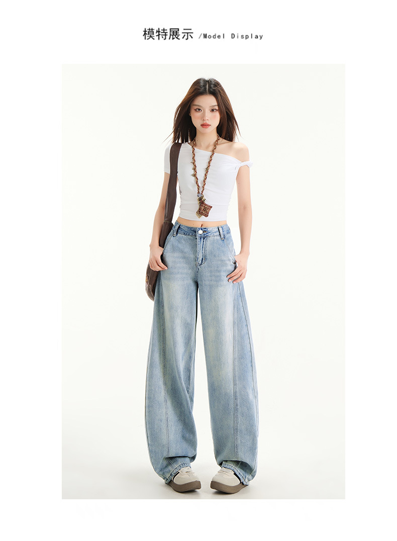 아이보리 느슨한 Machete 청바지 여성의 봄과 여름 2025 작은 남성을위한 새로운 높은 허리 슬림 핏 바지스토어 가기