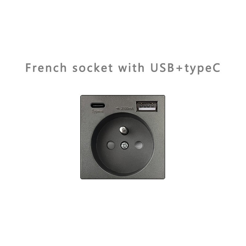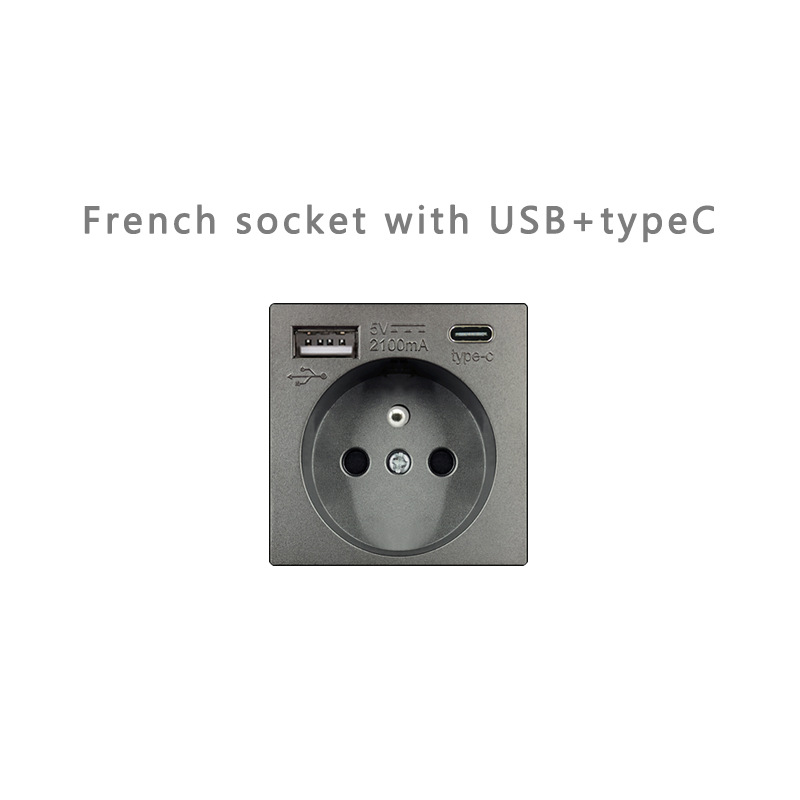 회색 86형 호텔 일체형 스위치 소켓 패널 프리 매칭 모듈 기능 키 소켓 유럽 표준 프랑스 플러그