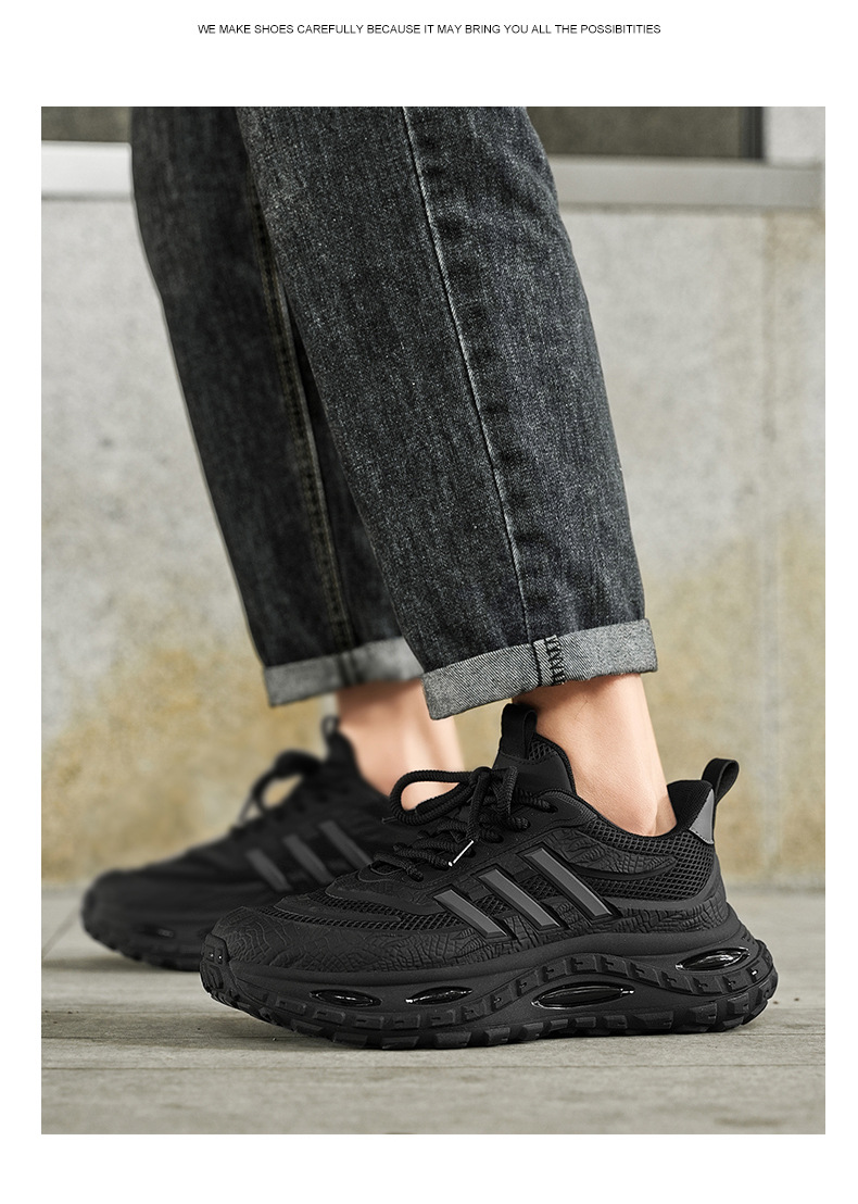 남성용 신발 새로운 봄과 여름 메쉬 통기성 토레 신발 남성용 두꺼운 단독 편안한 캐주얼 스포츠 트렌디 신발 블랙 사무라이 런닝 슈즈