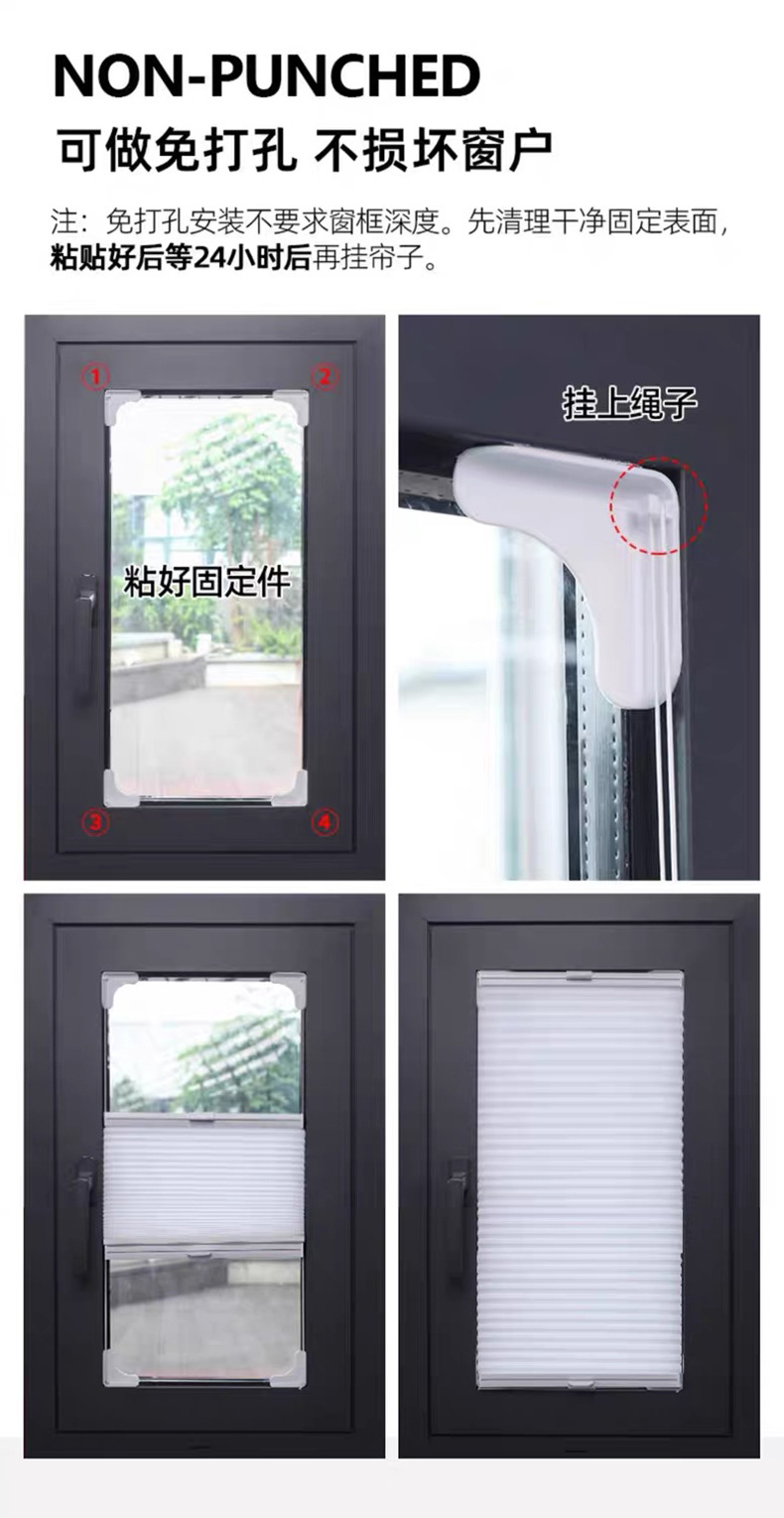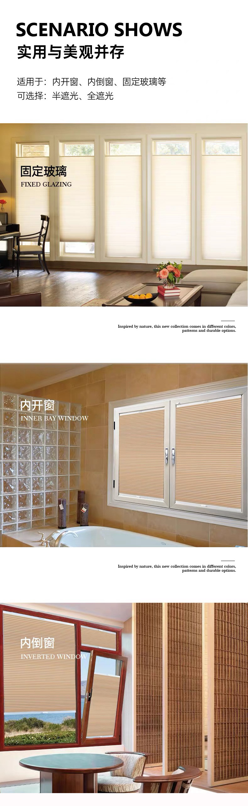 매립형 허니컴 커튼 손으로 당기는 전동 창문 자외선 차단 단열 커튼 안전 무선 수동 푸시풀 허니컴 커튼