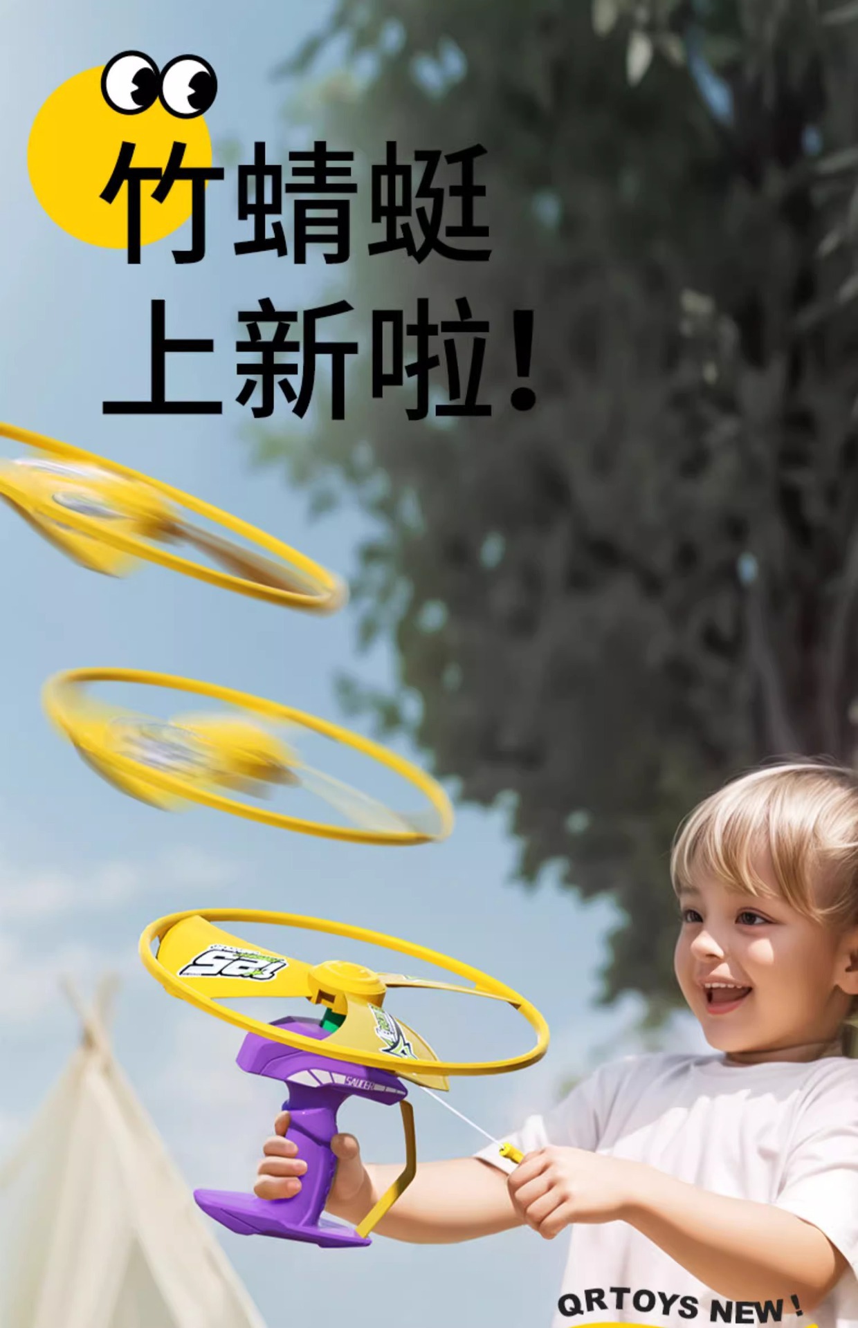 어린이 대나무 잠자리 튀김 비행 접시 휴대용 발사 투석기 비행 야외 장난감스토어 가기