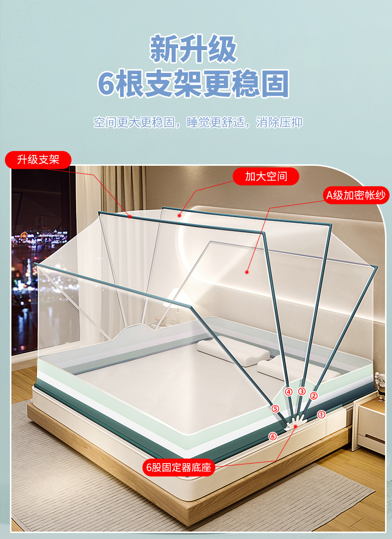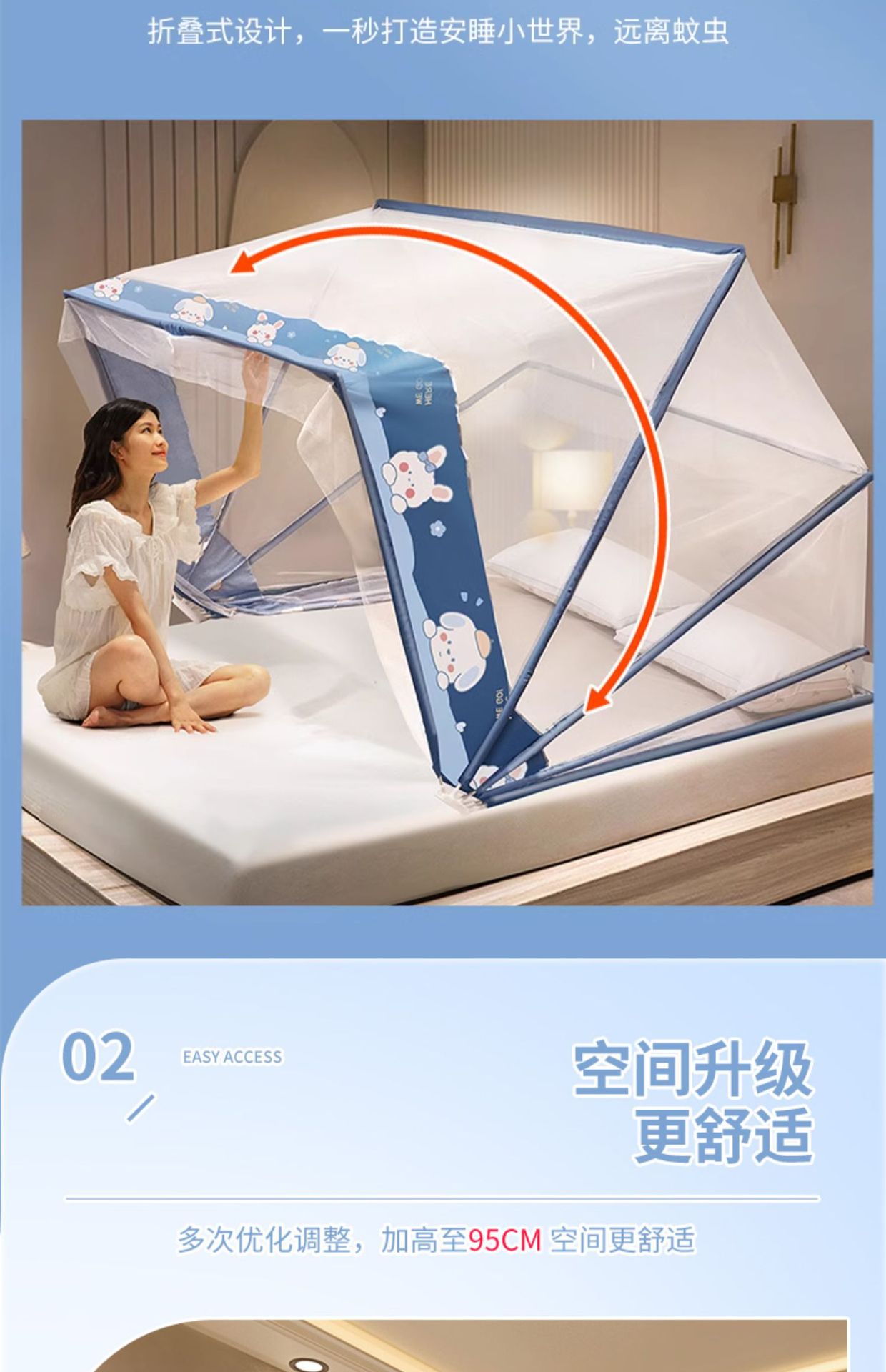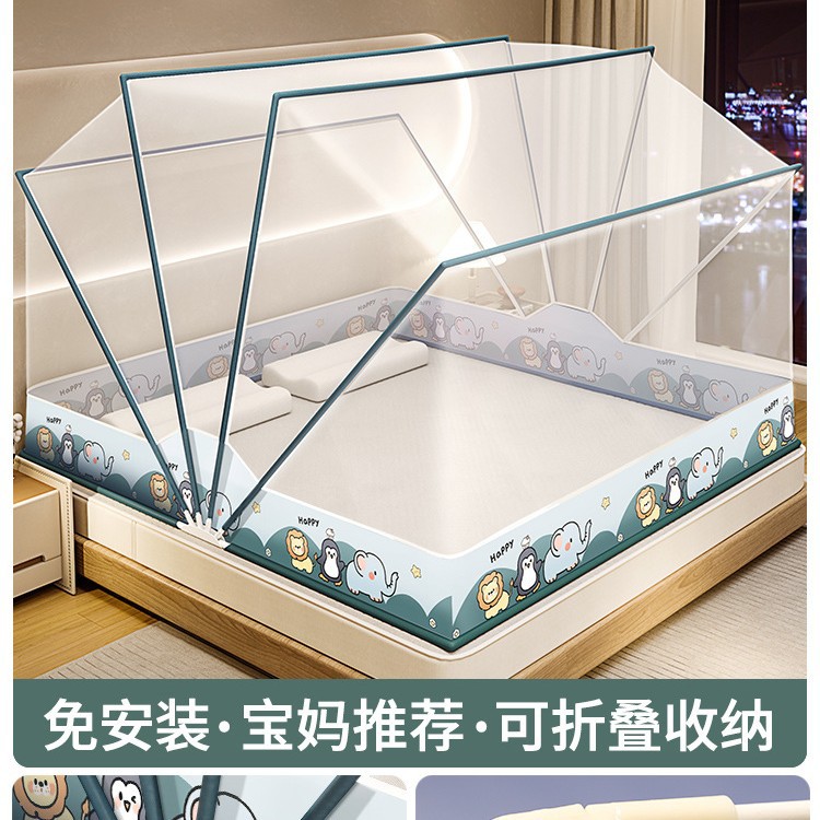 접이식 모기장 홈 침실 설치-무료 2025 새로운 유르트 단일 학생 기숙사 가을 방지 전체 커버 패턴스토어 가기