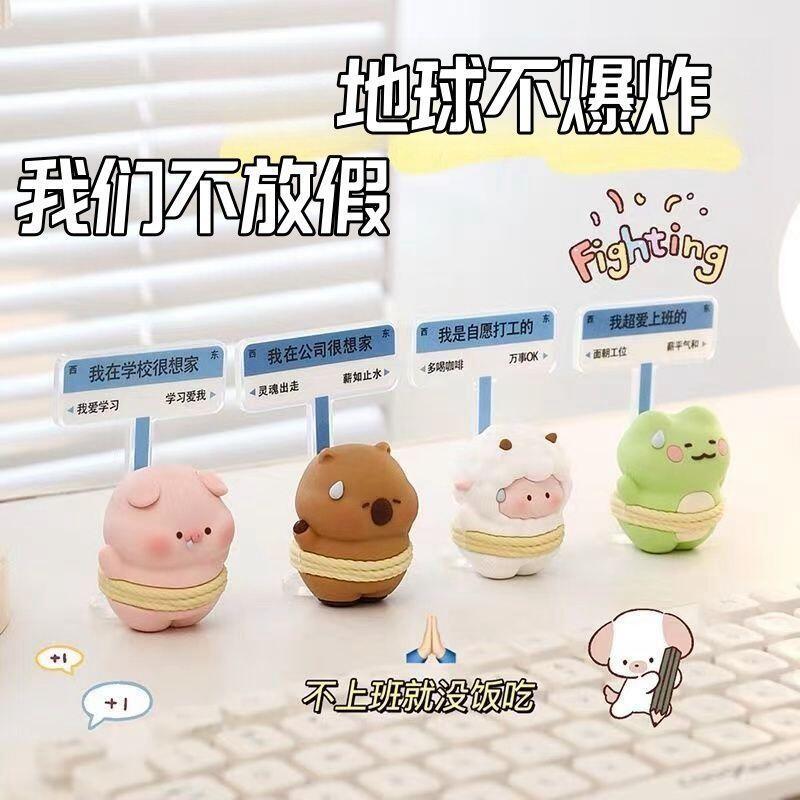 땀 만화 작은 동물 노동자 사무실 문화 장식품 동료 생일 선물을위한 데스크탑 장식스토어 가기
