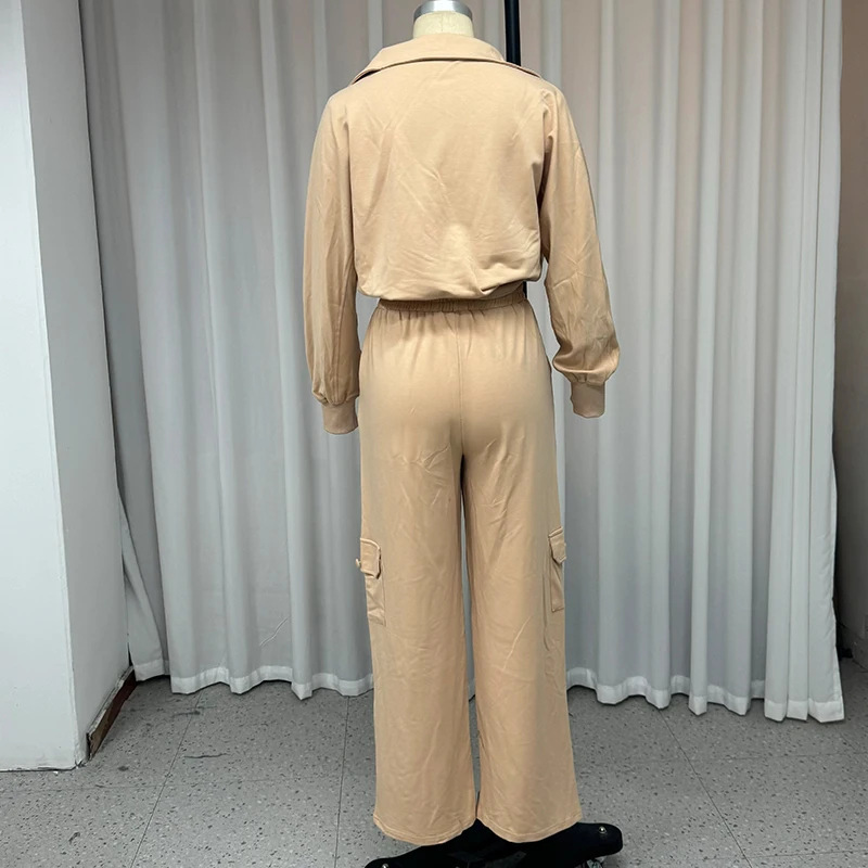 가을 2024 년 새로운 유럽과 미국의 아마존 국경 여성 엘 짧은 탑 하이 허리 작업복 와이드 레그 바지 투피스 세트스토어 가기