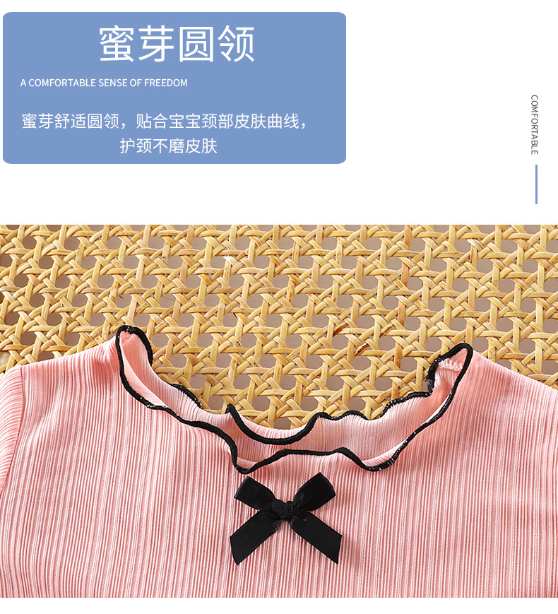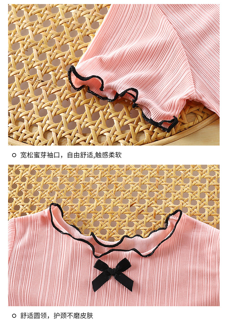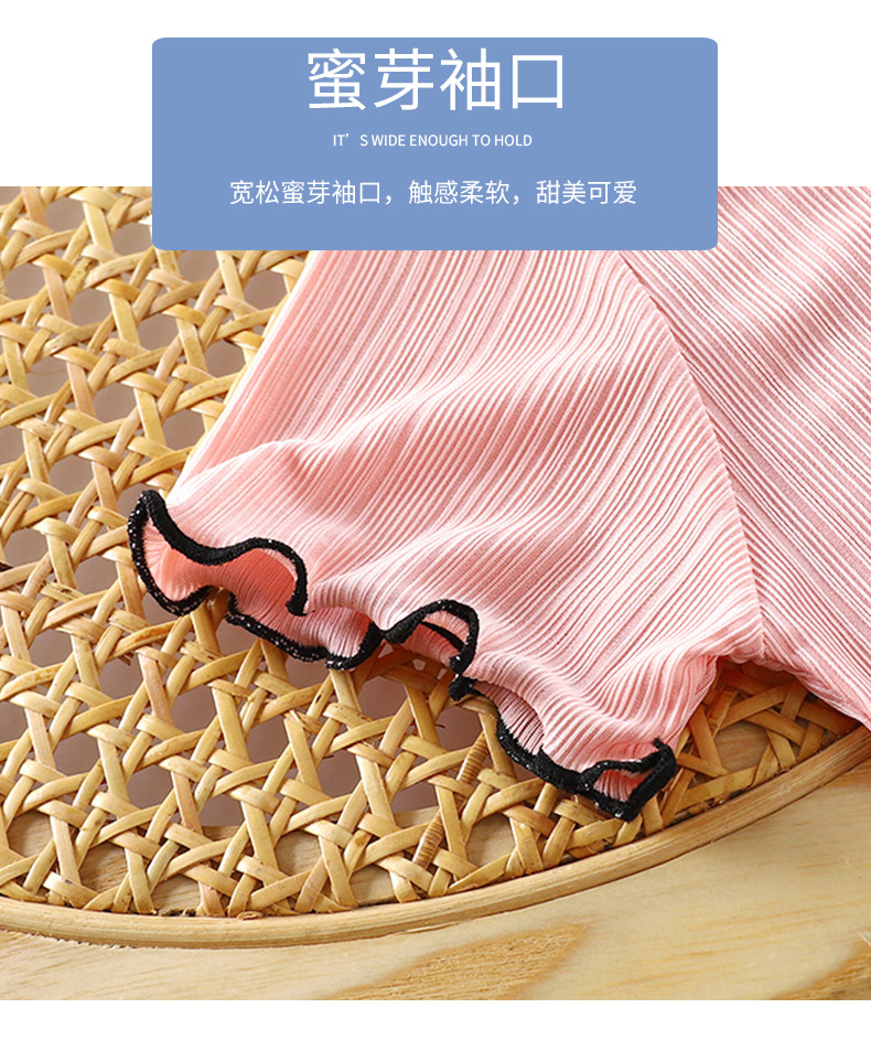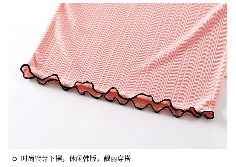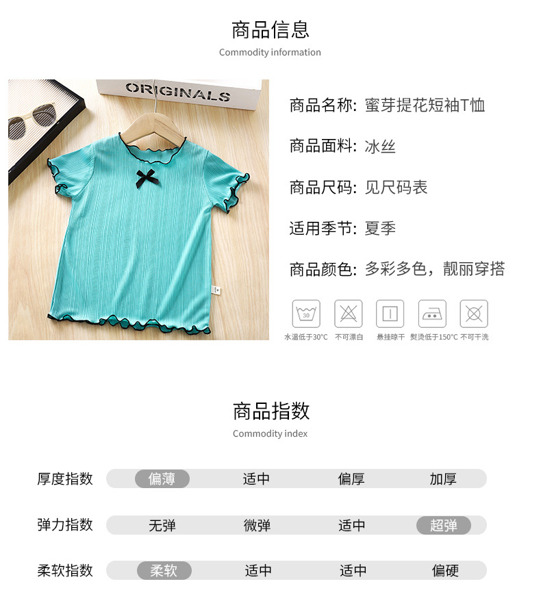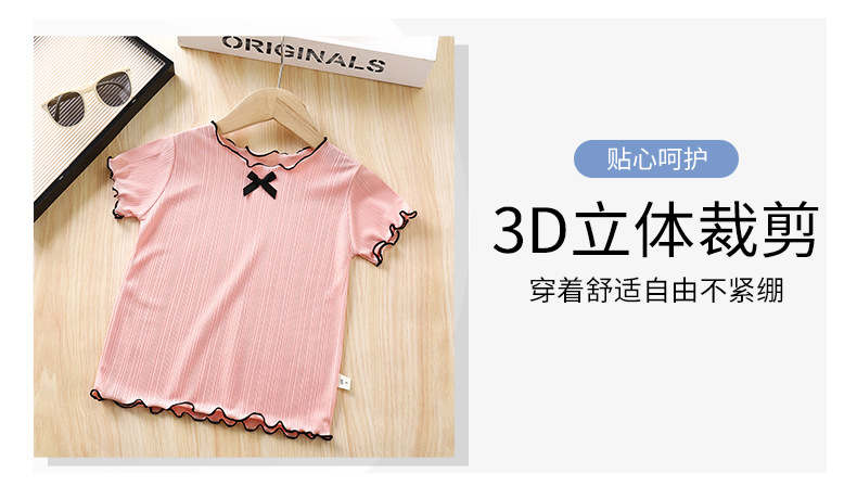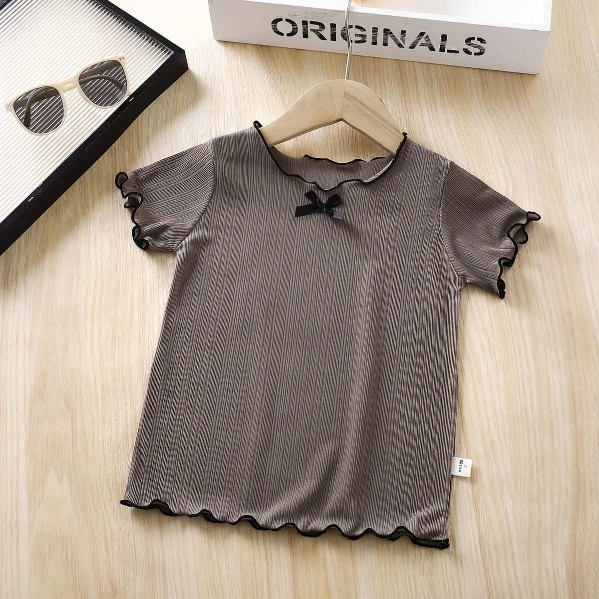 여름 얇은 여자 티셔츠 한국 둥근 목 귀 테두리 반팔 여름 새 스타일 아기 소녀의 서양식 아이스 실크 탑