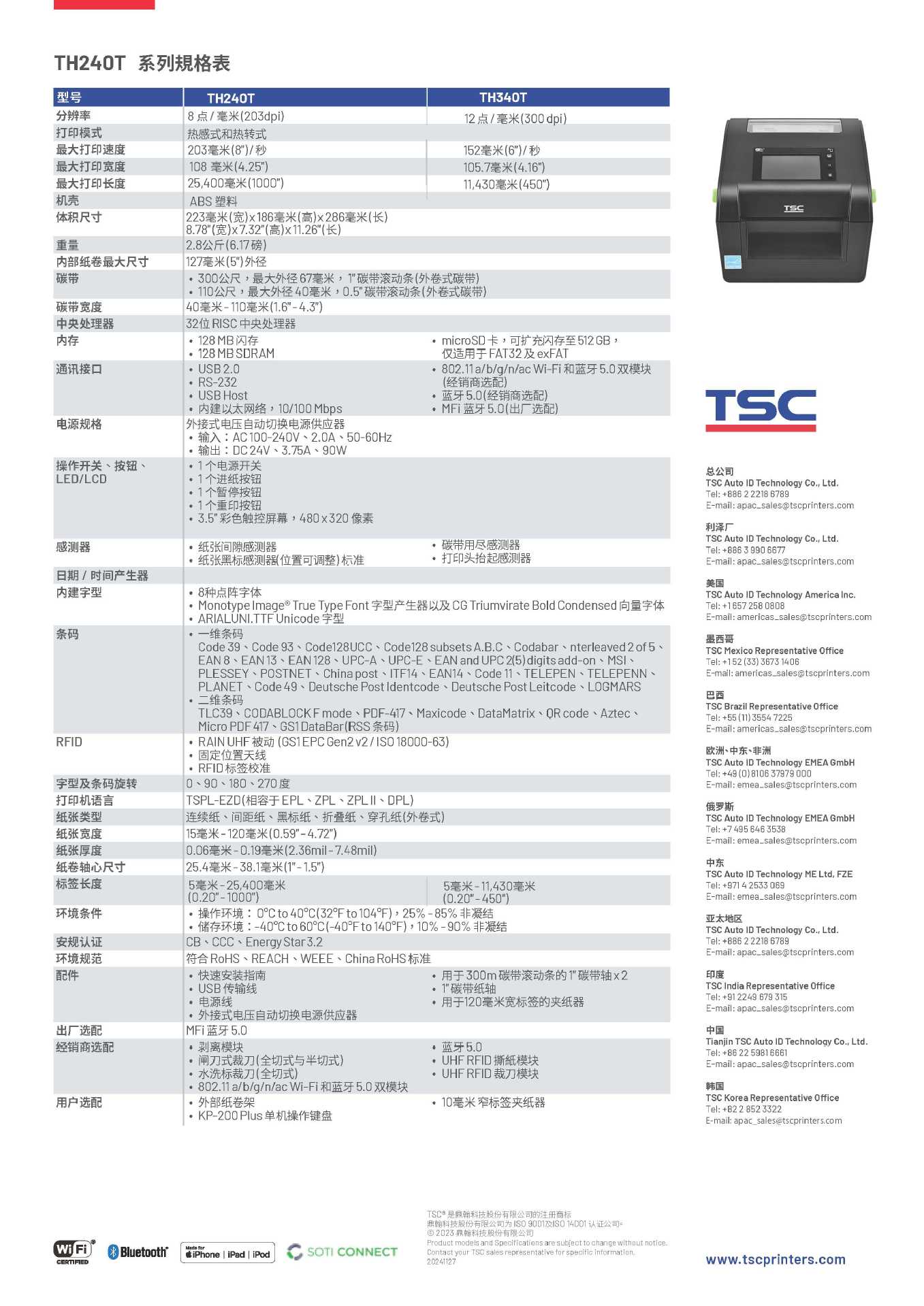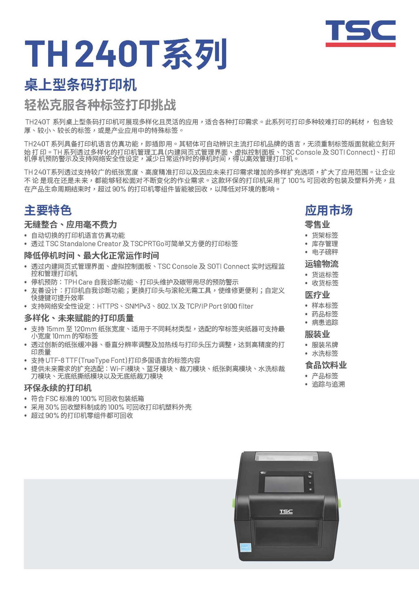 TSC TH240/TH340/DH240/DH340 데스크탑 DH 시리즈 4inch 바코드 라벨 프린터