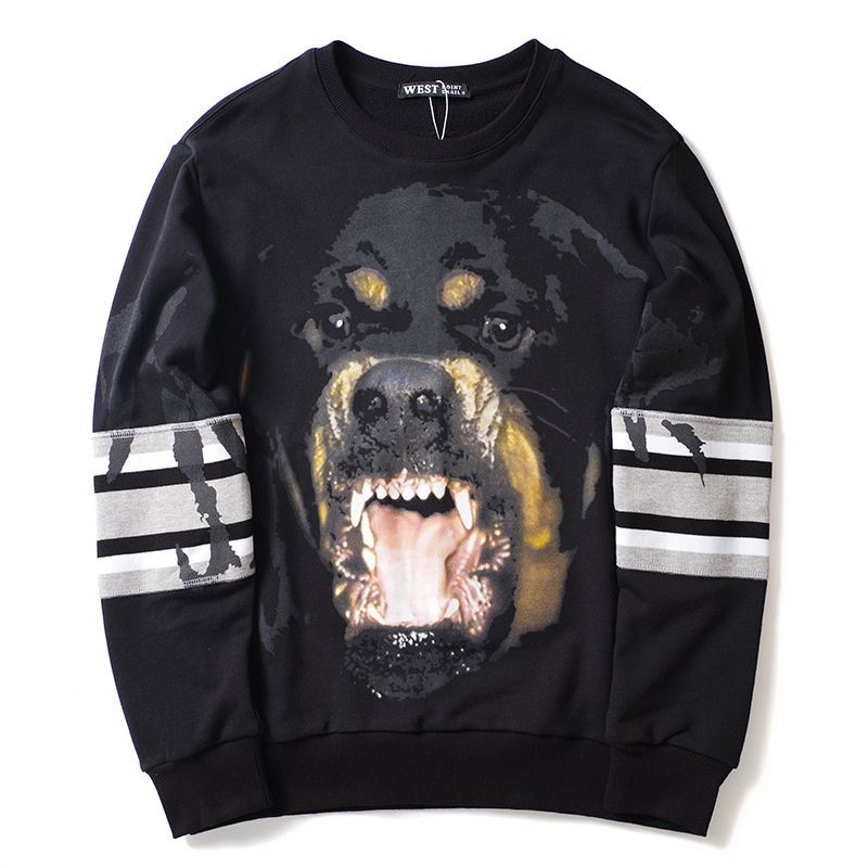 아메리칸 트렌디 브랜드 인터넷 연예인 스웨트셔츠 트렌디 인 남성용 빅 레드 도그 헤드 프린트 플랫 기계 패치 셔츠 젊은 커플 착용