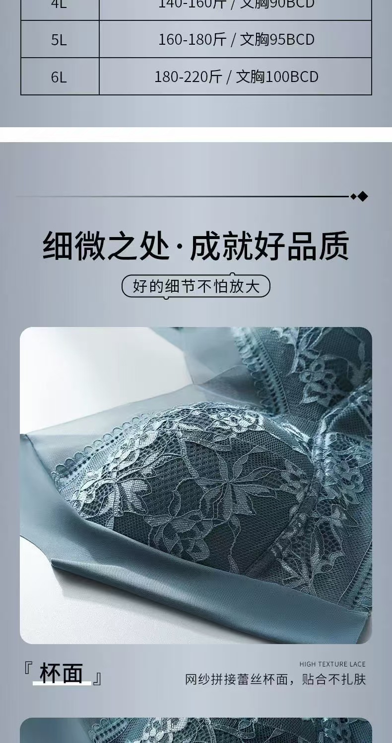 라이브 폭발 섹시한 레이스 플러스 사이즈 브래지어 처짐 방지 얇은 고정 컵 큰 가슴 작은 추적없는 속옷
