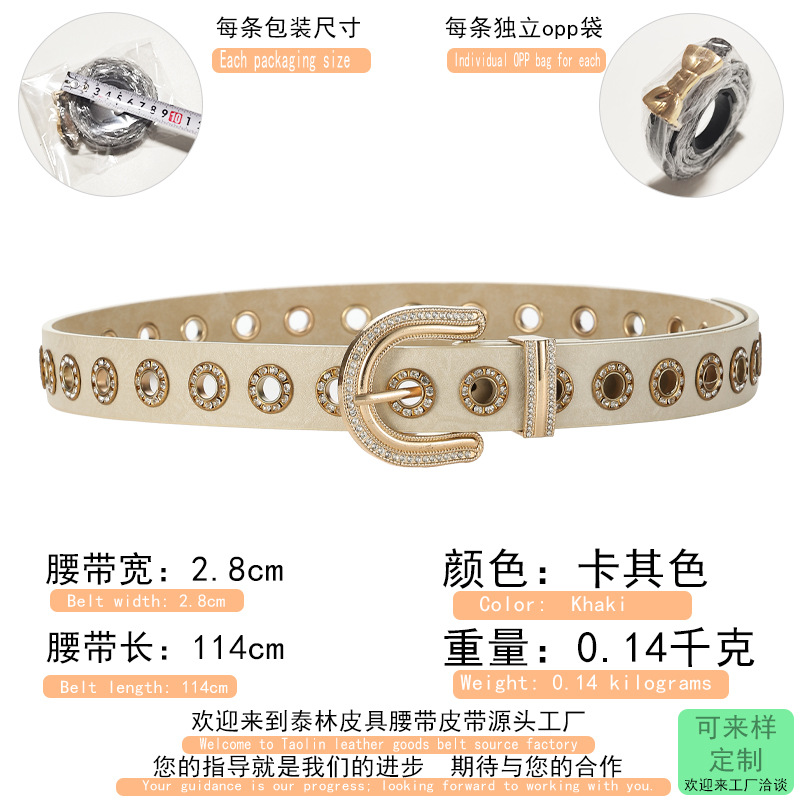 유럽과 미국의 국경 간 인기 다이아몬드 핀 버클 패션 다용도 여성 벨트 고급 여성 벨트 공장 도매