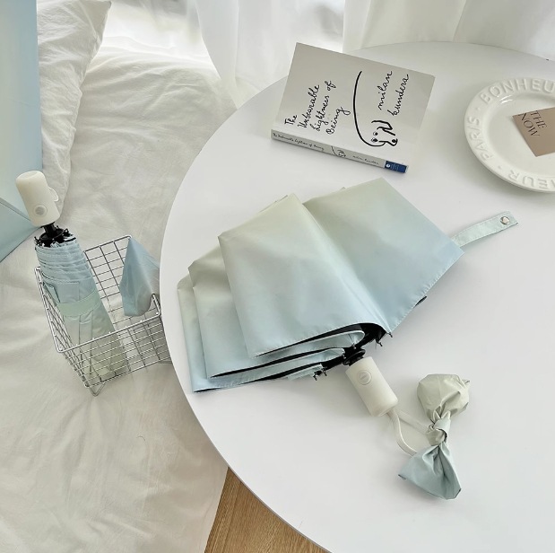 바다 소금 푸른 그라디언트 우산 태양 우산 맑고 비 이중 목적 검은 고무 태양 보호 UV 보호 우산 자동 여성 인-스토어 가기
