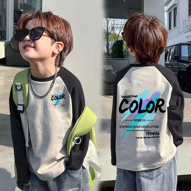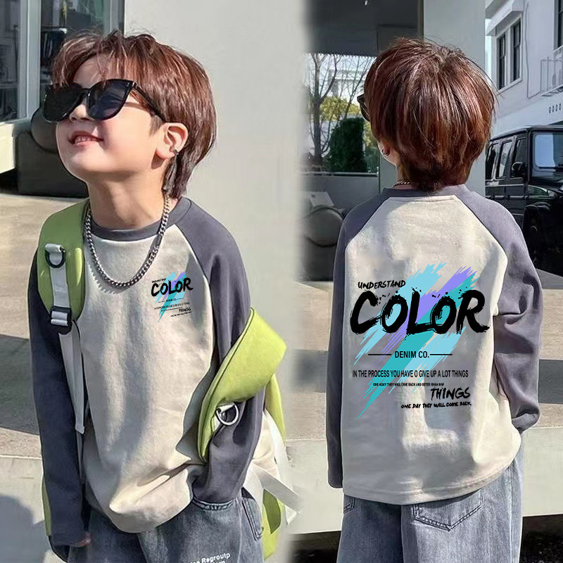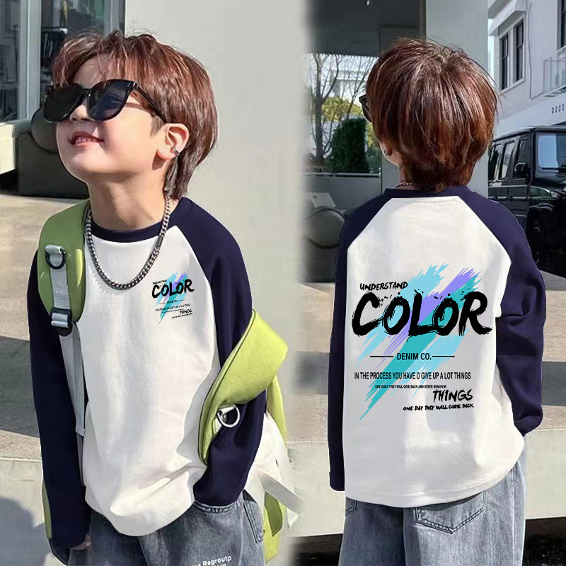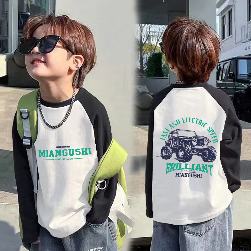 새로운 100% 면 가을 긴팔 티셔츠 소년 대비 티셔츠 어린이 트렌디 인쇄 잘 생긴 기본 셔츠 T스토어 가기