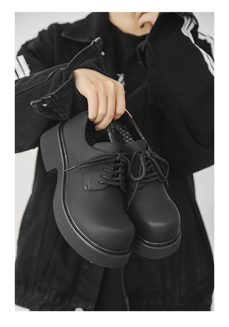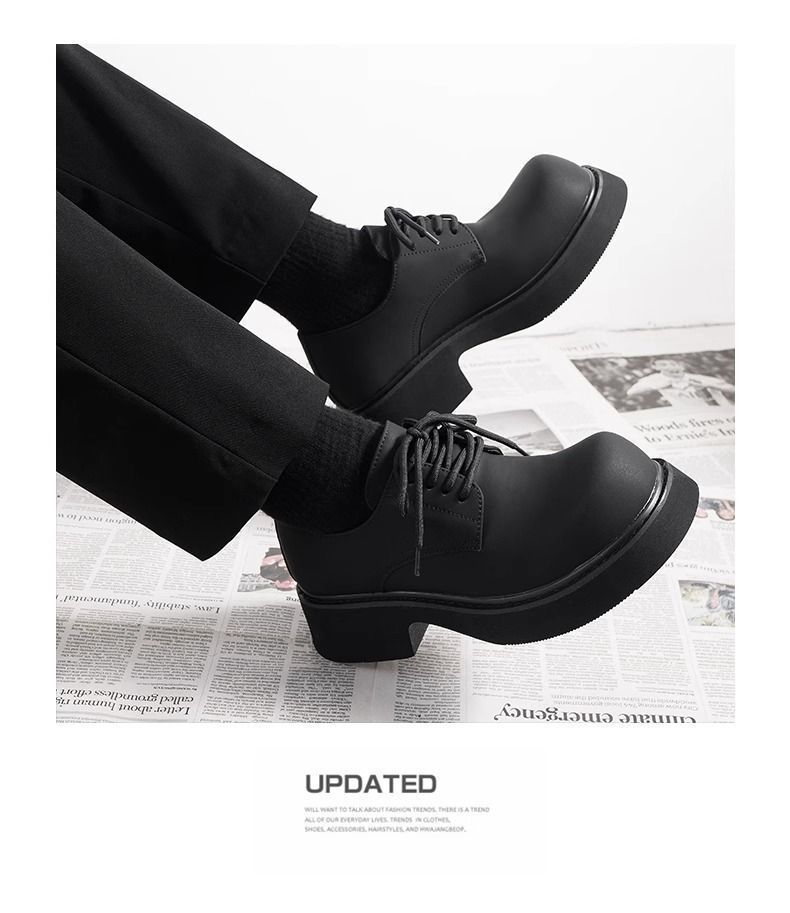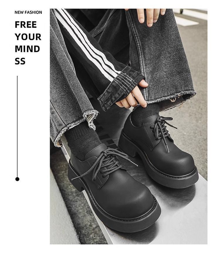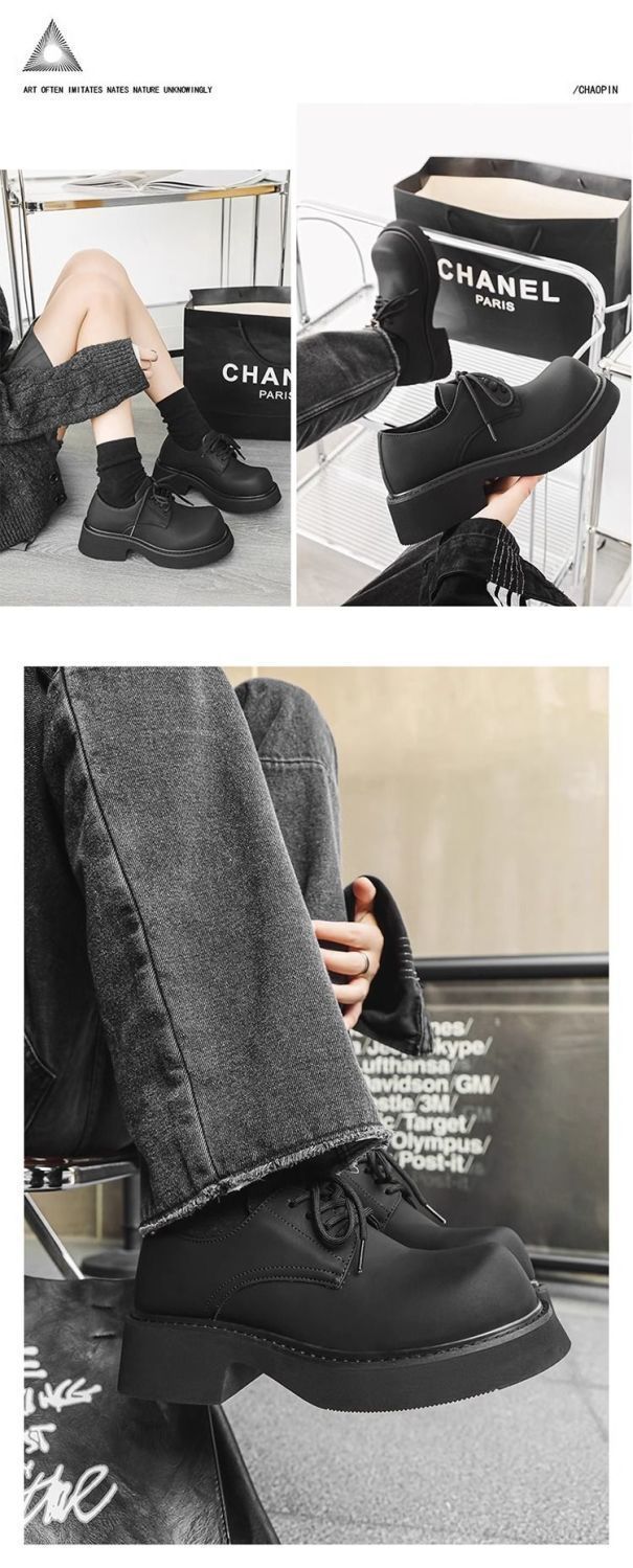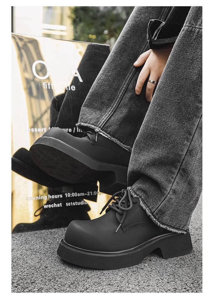 [부드러운 가죽] 남성 신발 높이 6cm 증가 검은 가죽 신발 가을 두꺼운 밑창 방수 캐주얼 운동화 고급 탈취제