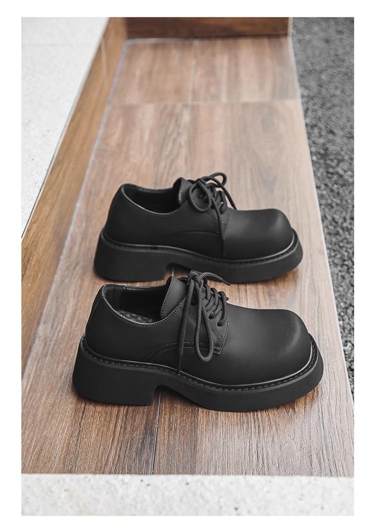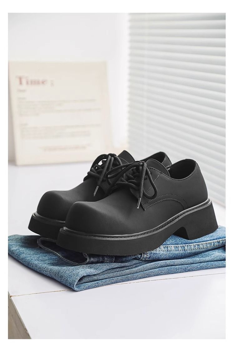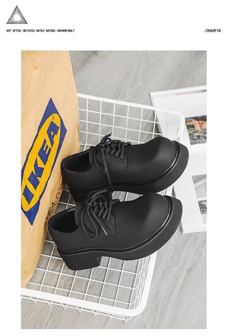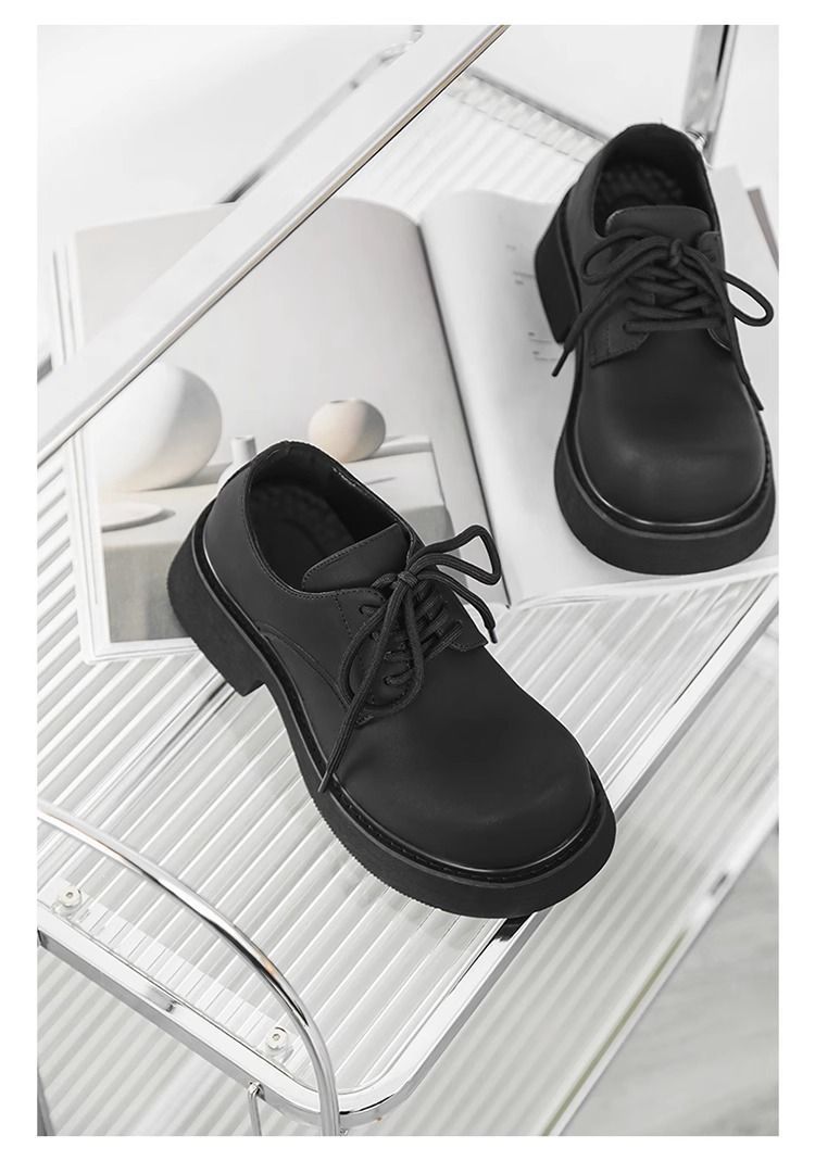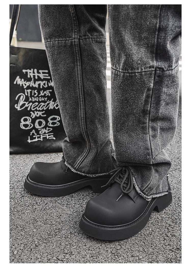 [부드러운 가죽] 남성 신발 높이 6cm 증가 검은 가죽 신발 가을 두꺼운 밑창 방수 캐주얼 운동화 고급 탈취제