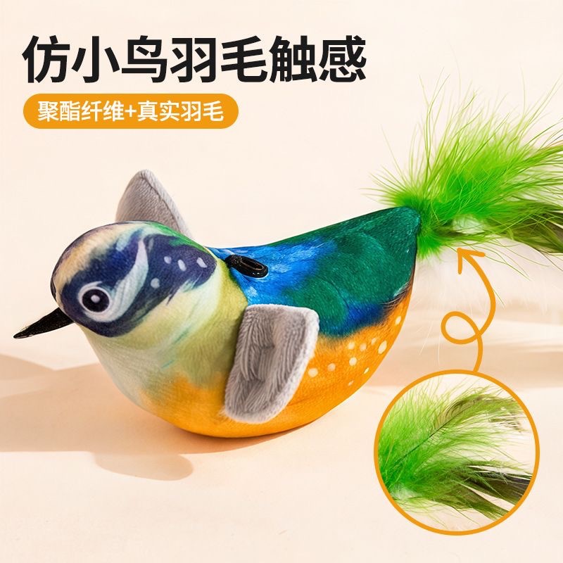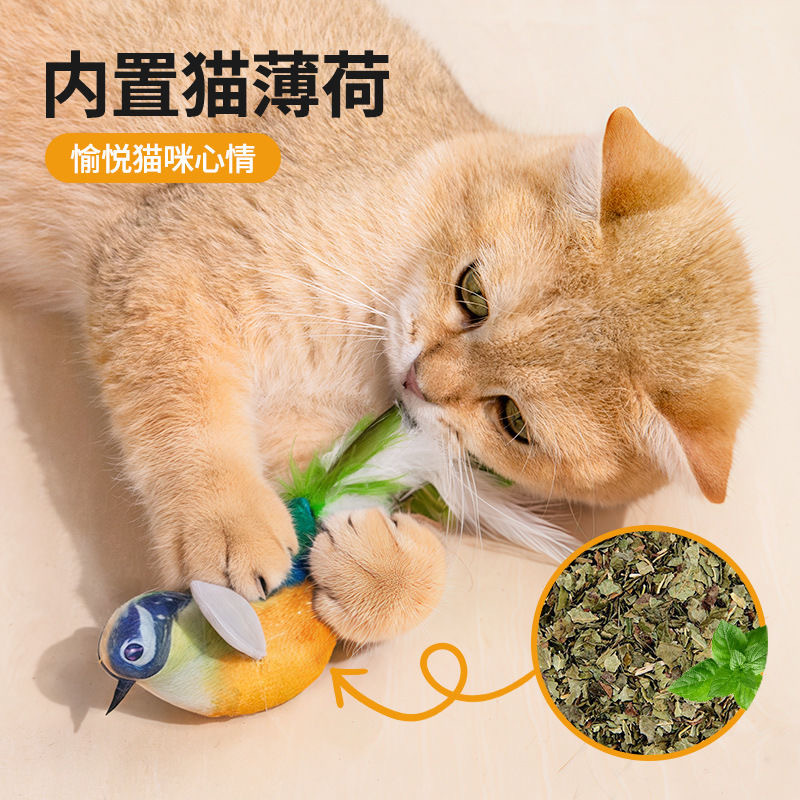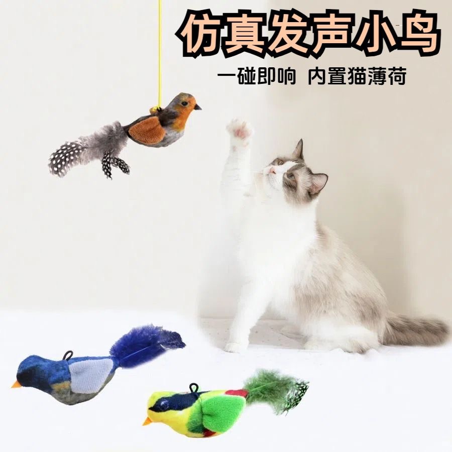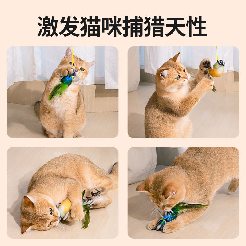 고양이 재미 스틱 애완 동물 고양이 장난감 시뮬레이션 사운드 새 새에게 매달려있는 새를 부르는 참새 고양이스토어 가기
