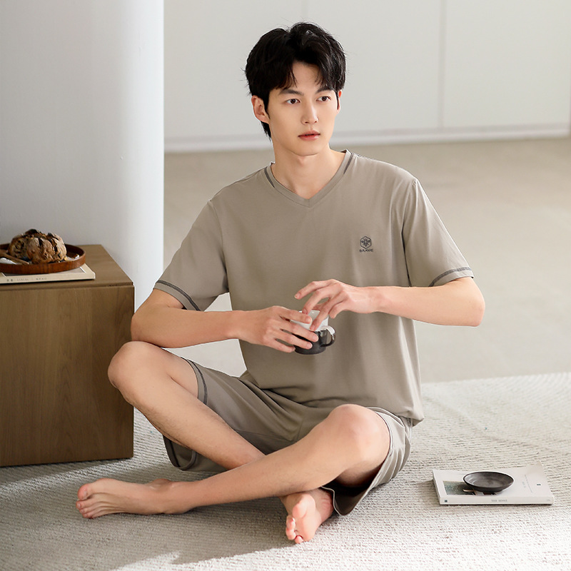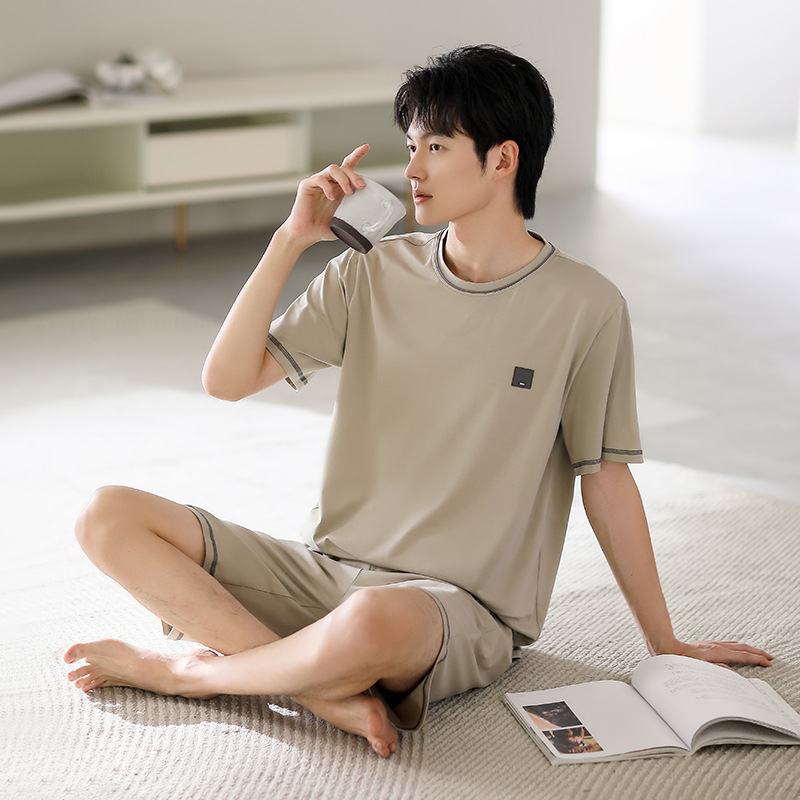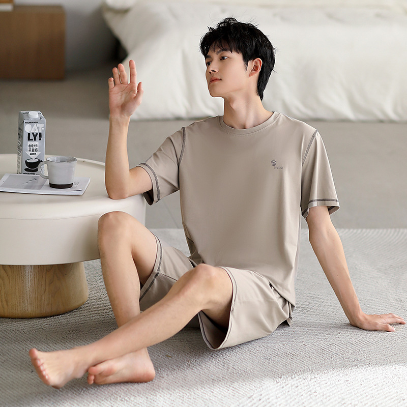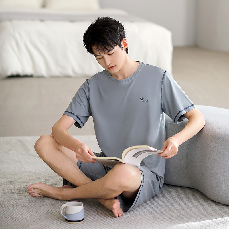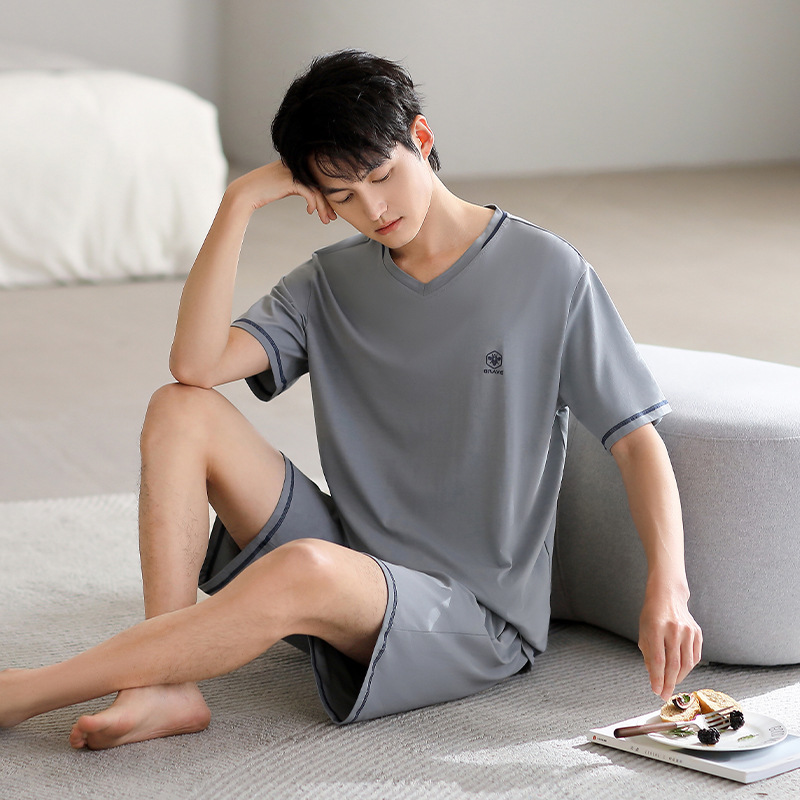 남성 잠옷 여름 얇은 모달 반팔 반바지 여름 얼음 실크 시원한 느낌 남성 대형 홈웨어 세트스토어 가기
